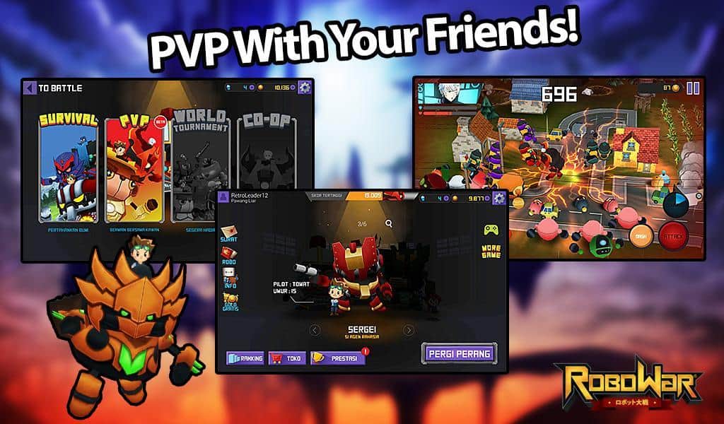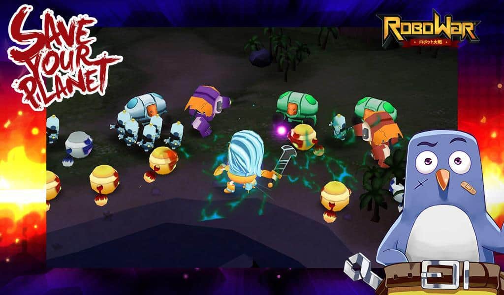 ROBOWAR - Robot VS Alien – динамичный экшен на андроид, где вы будете управлять гигантским роботом. Пришельцы прилетели на нашу планету и только вы способны остановить их. Возьмите под свой контроль огромного робота и сражайтесь с захватчиками, в ваших руках теперь находиться судьба человечества. Нажимайте на экран своего телефона или планшета и выполняйте спецприемы и суперкомо удары, сокрушая врагов одним касанием. Выбирайте себе робота, учитывая свои пожелания, ведь каждый из них обладает уникальными способностями и умениями. Набирайте очки и сравнивайте свои результаты с игроками со всего мира.