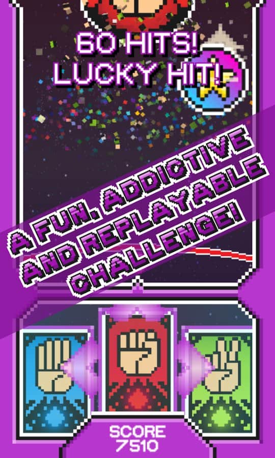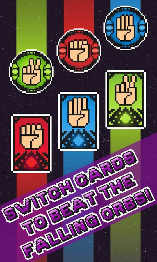 Rock, Paper, Panic! – увлекательная аркадная игра на андроид, созданная для веселого времяпрепровождения. В этой игре правила очень просты вашей задачей будет переключать между картами и уничтожать врагов. В этой популярной игре «камень, ножницы, бумага» вам необходимо запомнить что: красный камень бьет зеленые ножницы, зеленые ножницы бью синюю бумагу, а синяя бумага бьет красный камень. Переключайтесь между картами и весело проводите свое свободное время при этом, стараясь победить сильнейших боссов. Наберите достаточное количество очков и добейтесь рекордных результатов. Наслаждайтесь красивыми визуальными эффектами и играйте с друзьями.