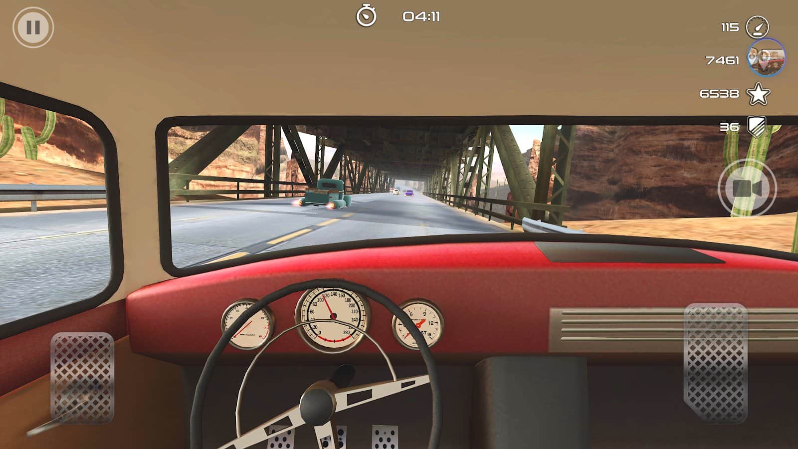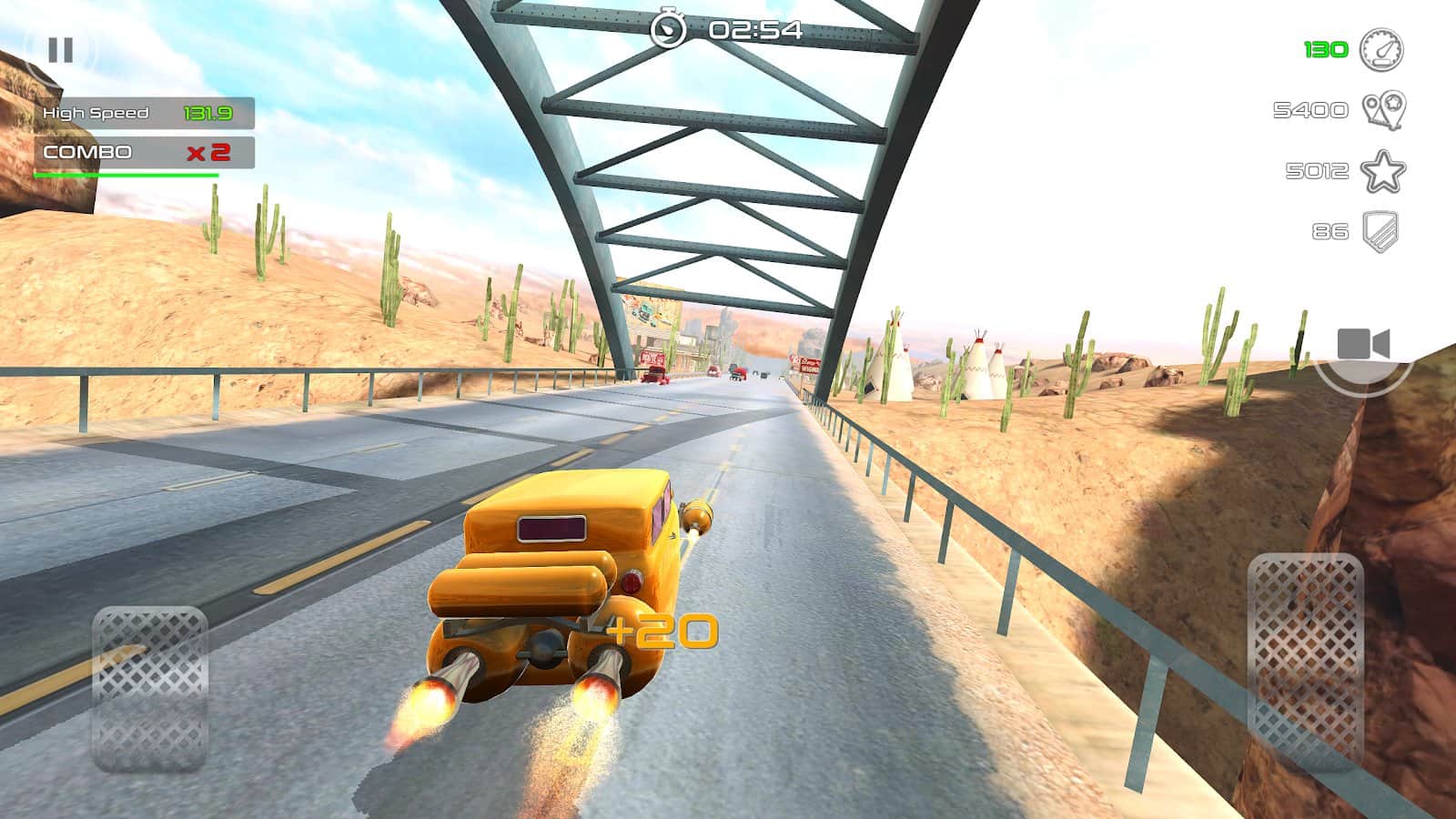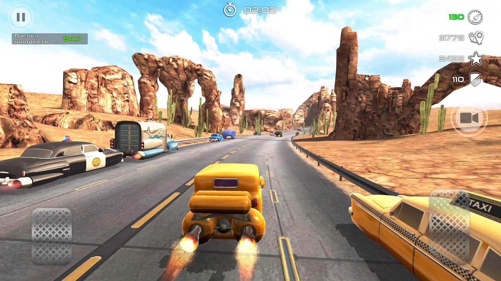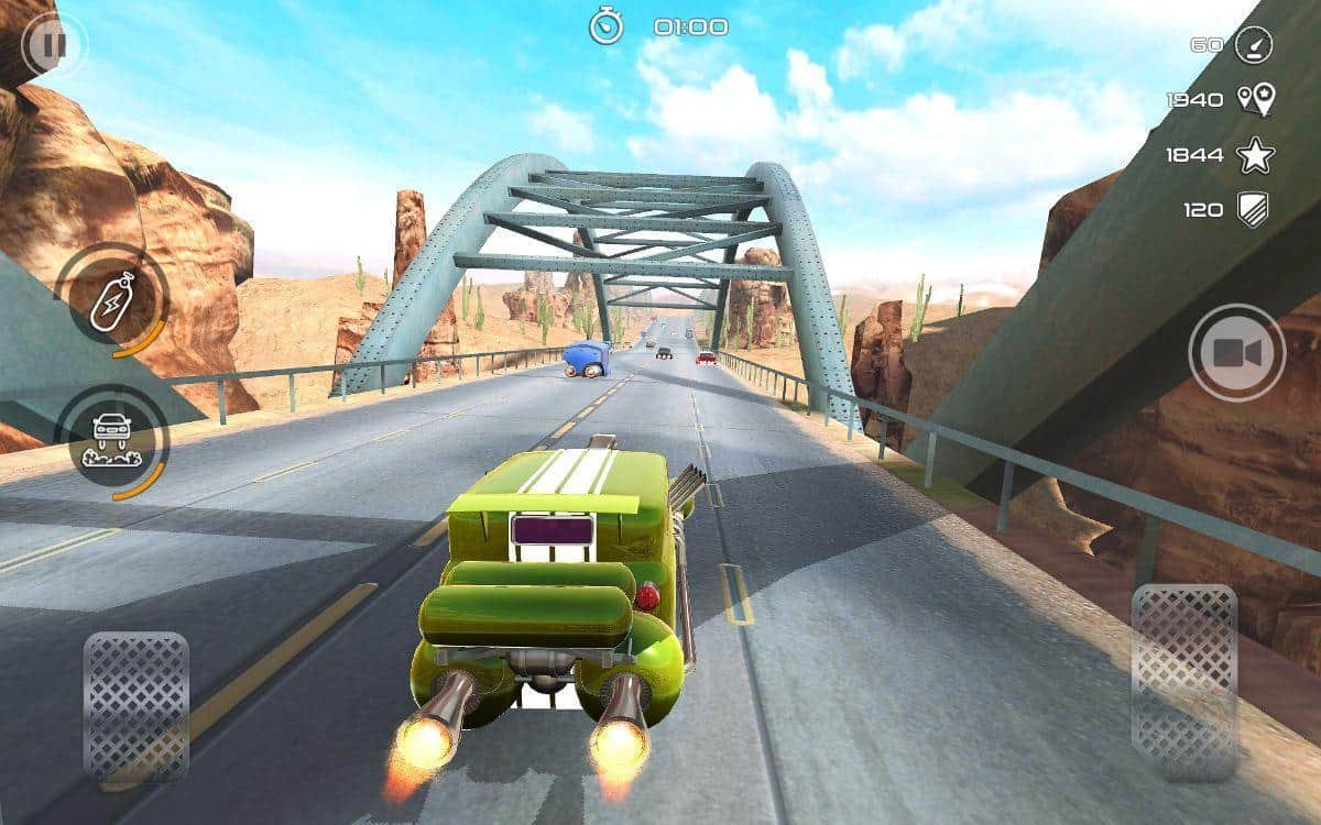 Rocket Carz Racing - Never Stop – управляйте ретро-автомобилями которые будут оснащены ракетными двигателями. В этой игре вы возьмете под свой контроль ретро-автомобиль, который парит над землей и летит вперед с огромной скоростью благодаря ракетному двигателю. Примите участие в экстремальных гонках и гоняйте по различным трассам в компании соперников стараясь прийти к финишу первым. Гоняйте по оживленным улицам города, загородным шоссе и пустыне, при этом не допуская столкновений и аварий с другими машинами. Открывайте для себя новые автомобили и соберите свою коллекцию.