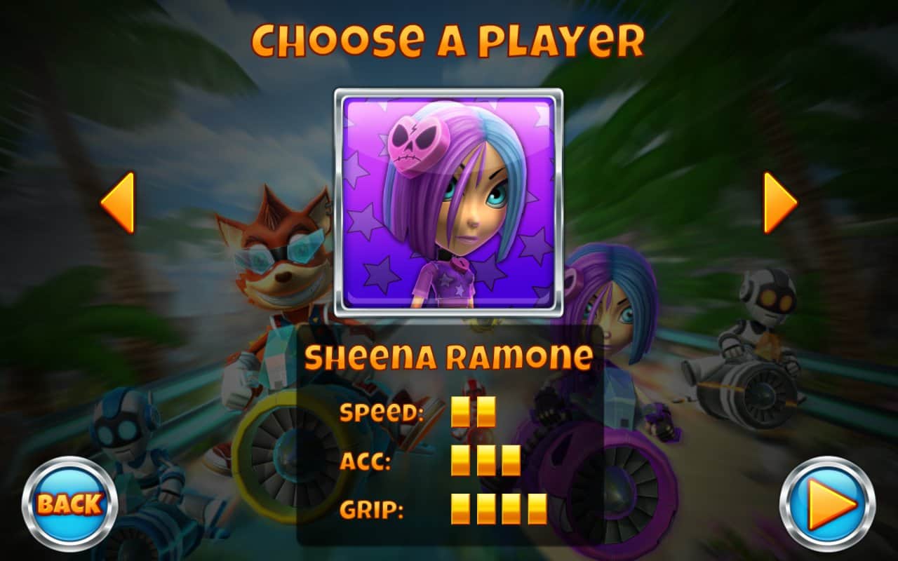 Rocket Racer – сумасшедшие ракеты, бешенные скорости и адреналиновый драйв ждёт своего игрока. Фантастические яркие уровни, интересные персонажи, головокружительные трасы с различными препятствиями ждут своего пилота. Выберите свой характер между Fox Rock и Шина Рамоне и вперёд к новым победам. Используйте ускорители, различное вооружение и специальные предметы, для достижения своей цели.