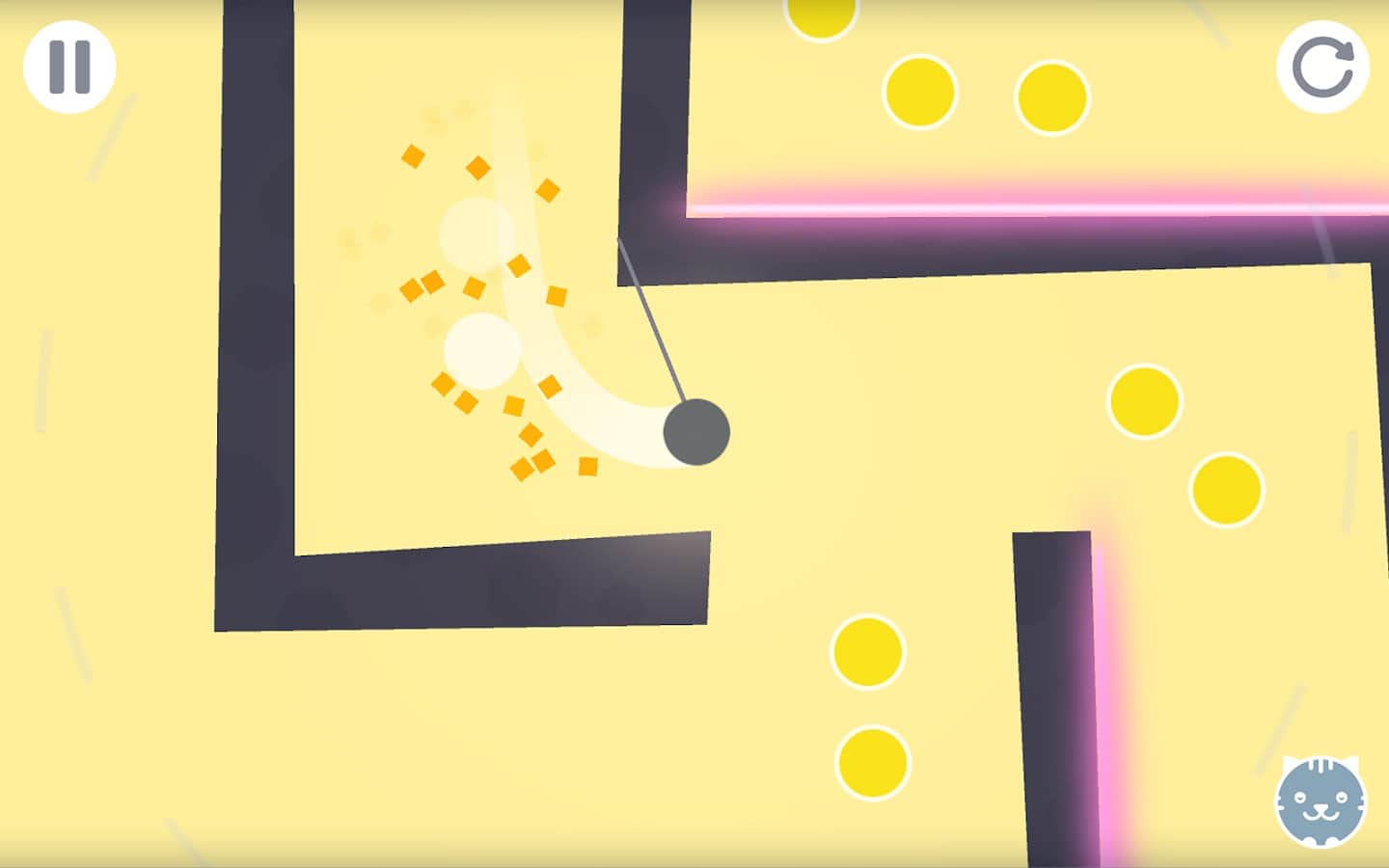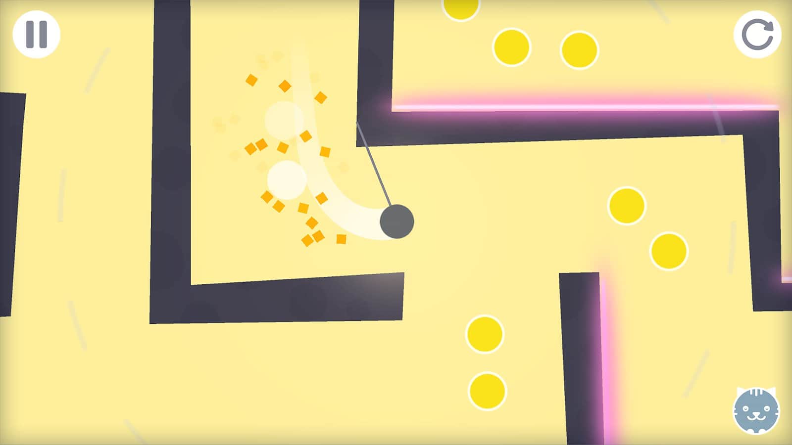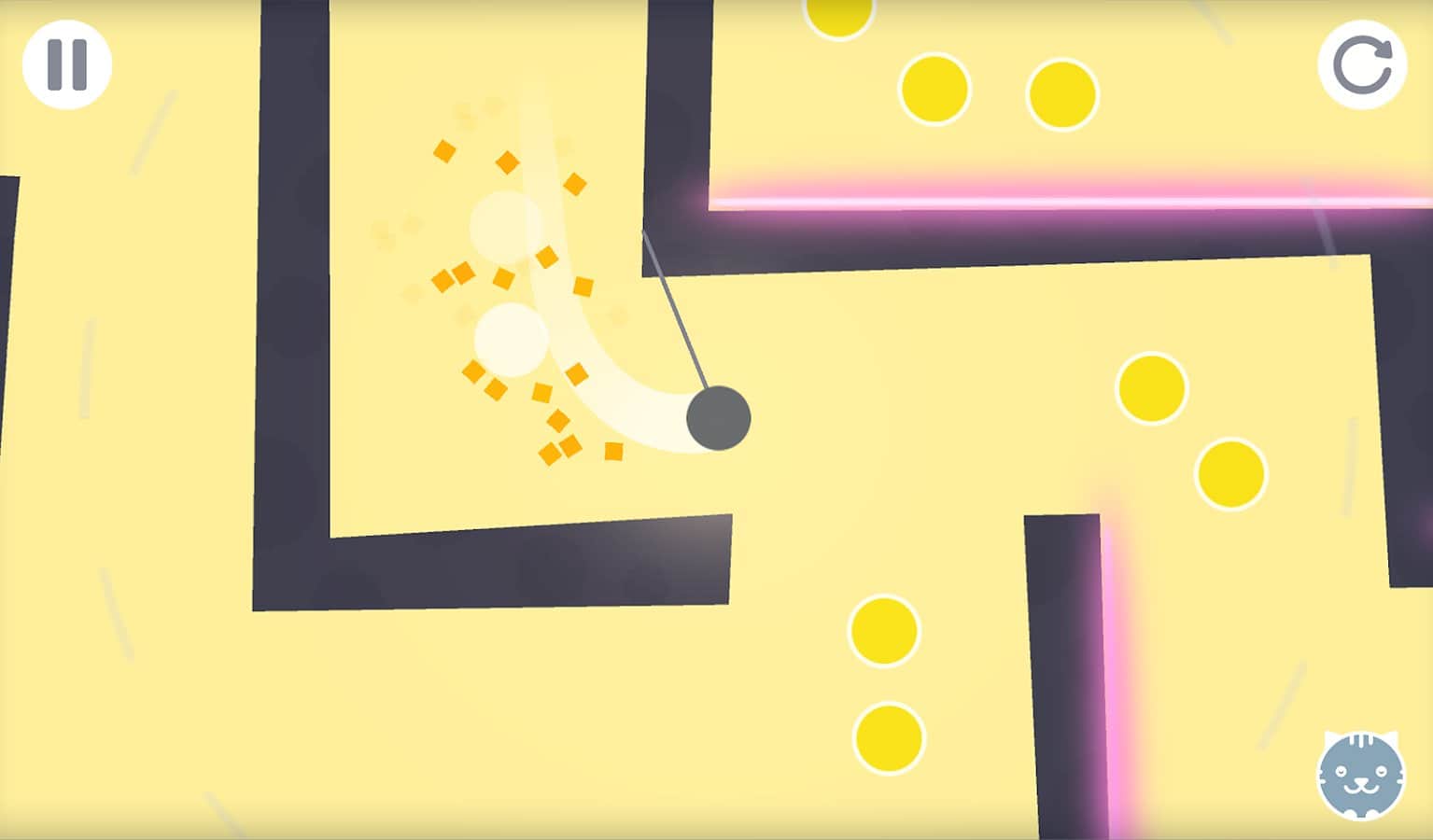 Rocking Ball – управляйте движением шарика в запутанном лабиринте. В этой игре вы возьмете под свой контроль шарик, который перемещается в узких проходах, используя для этого веревку, выпуская ее одним прикосновением к экрану и цепляясь за стенки лабиринта. Вашей главной задачей будет добраться до выхода и собрать по возможности все имеющиеся на уровне монетки. Ваша задача усложниться тем, что времени у вас будет в обрез, и на пути будут появляться лазеры и движущиеся механизмы, которые смертельно опасны для вас. В игре 20 уровней с отличной физикой и графикой, которые будут усложняться по мере их прохождения.