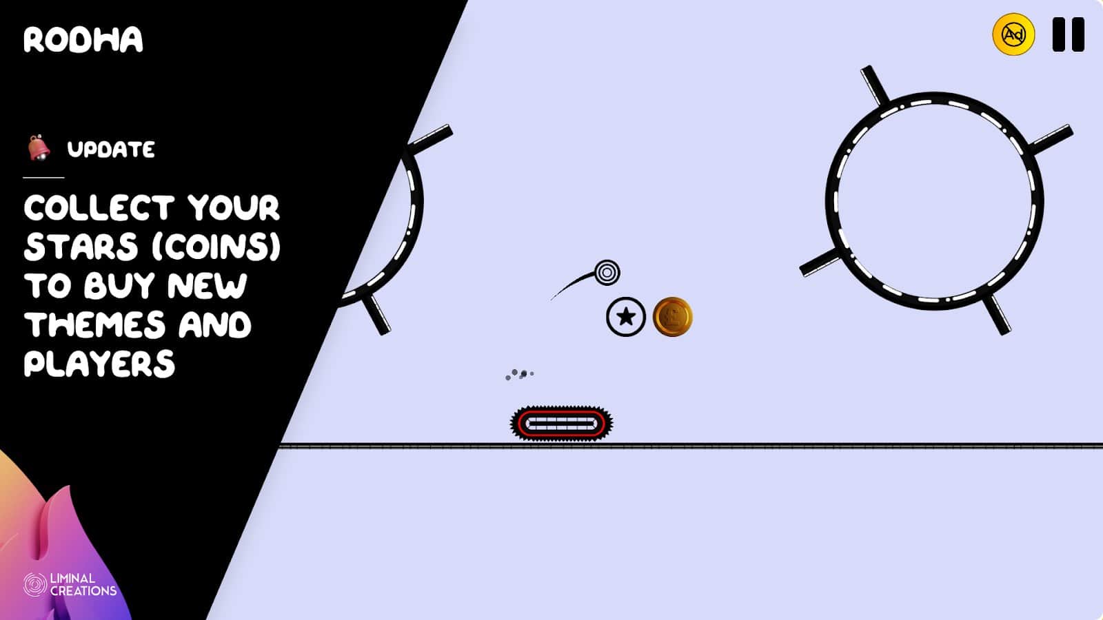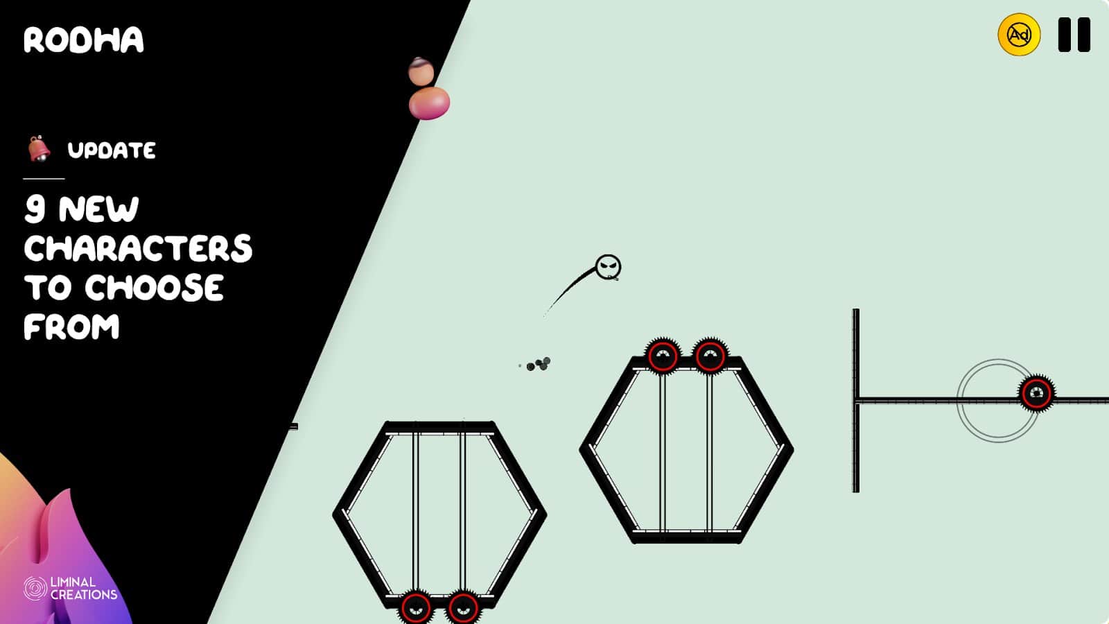 Что мне очень понравилось это механика, я на том же туториале залип с этими прыжками. Уровни сделаны прикольно, просто и минималистично. Есть очень много разных препятствий от обычных пропадающих платформ до каких то турелей стреляющими ракетами. Что еще очень понравилось это цвета, они прям топовые, на это есть даже раздел темы, там понятно что покупаешь..Также есть и скины на Родхи но какие то они такие себе, ну да ладно. Из минусов я выделю то что игра быстро надоедает. В целом игра годная, попробовать поиграть советую.