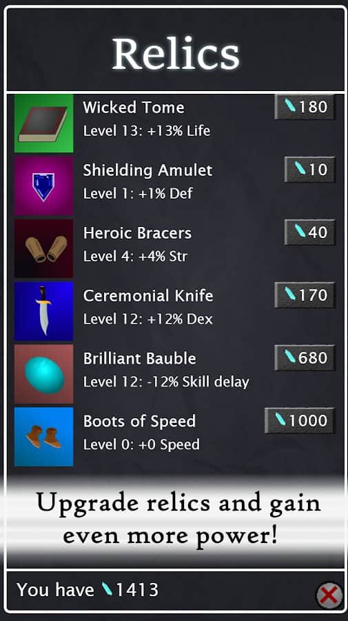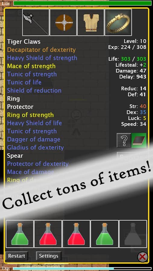 Rogue Dungeon RPG – путешествуйте по фантастическому миру, полному опасностей и приключений. Наращивайте свою силу и мощь, прокачивайте способности и используйте магию и оружие, чтобы сражаться с врагами и монстрами и добраться до самых сильных боссов. Проходите уровни, выполняйте миссии и получайте награды, находите магические предметы и используйте их для усилений. Здесь простое управление и динамичный геймплей, наслаждайтесь эпичными сражениями. Включите режим бесконечных боев и используйте артефакты, чтобы воскреснуть в случае проигрыша.