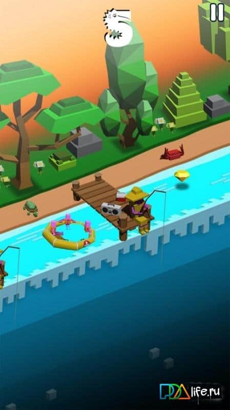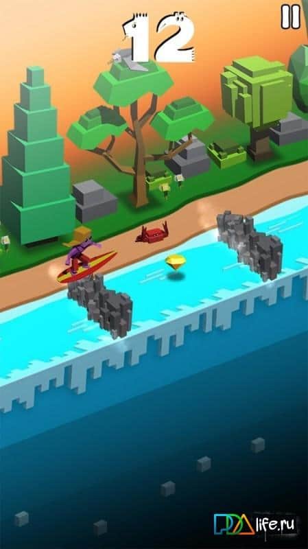 Игровые жанра развиваются постоянно и чем популярней направление тем активнее его развитие. Таким примером могут служить ранеры, особенно в рамках мобильных платформ, популярность подобных игр рождает огромный выбор предложений от чего разработчики постоянно пытаются реализовать новые идеи, дабы удивить геймеров. Rolling Rapids - яркий пример видоизмененного ранера, точнее игровая механика выполнена в привычном стиле, управляя героем ваша задача преодолеть максимально возможное расстояние при этом избегая столкновений с препятствиями и собирая призы. Изменения в большей мере коснулись внешнего вида игры, изометрическое расположение камеры и картинка представленная как бы в разрезе придает Rolling Rapids довольно оригинальный вид.