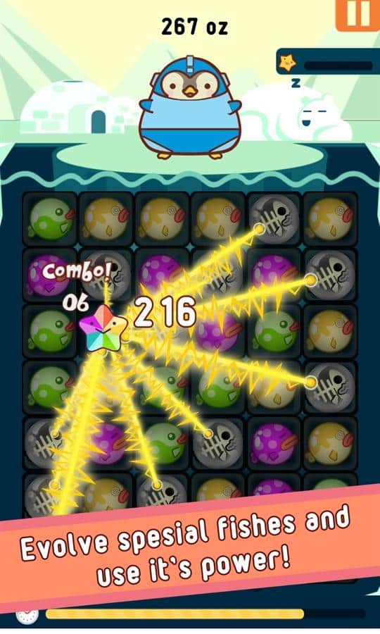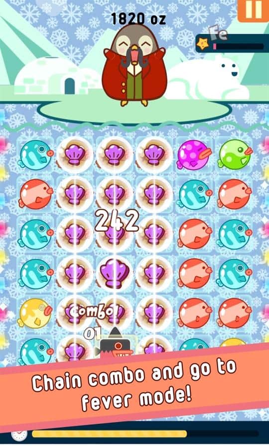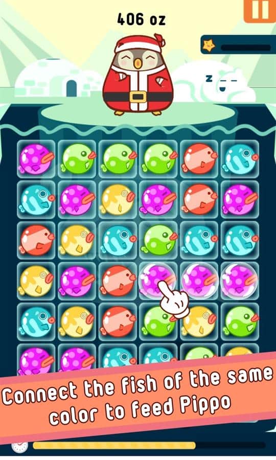 Roly Poly Penguin – игра, из жанра "три в ряд" в которой вам предстоит накормить голодного пингвина его любимой рыбой. Складывайте по три и более рыбок одного цвета в ряд, и они исчезнут с поля, а также получайте бонусы и зарабатывайте еще больше очков. Увлекательная игра, где вы в игровой форме будете откармливать вашего пингвина.
