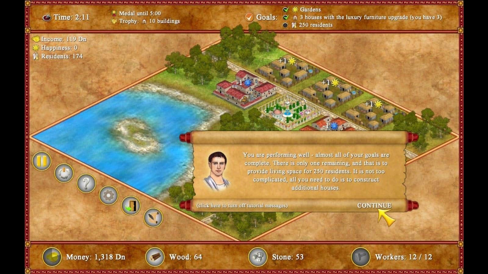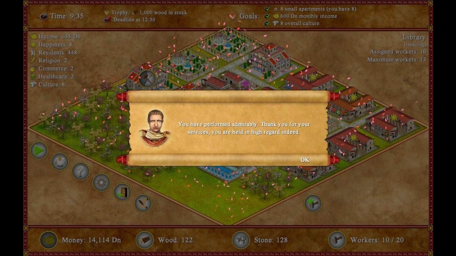 Ромополис - В этой захватывающей стратегии вам предстоит строить и управлять идиллическими римскими поселениями, заботясь о счастье и удовлетворенности ваших жителей. Начните свое великое строительство с древних римских домов, возводя десятки зданий в историческом стиле. Обеспечьте вашим жителям все необходимое, чтобы они были счастливы и довольны, и вам не заставит себя долго ждать вознаграждение в виде денег, славы и чести. Выбирайте свой путь к успеху: следуйте за интригующим сюжетом в режиме кампании или же развивайте свой город на своих собственных условиях, создавая уровни по своему вкусу. Награды и призы ждут тех, кто смело принимает вызов и строит самые великолепные города. На каждом этапе вашего строительства вы будете наслаждаться классической и простой игрой в жанре симулятора тайм-менеджмента. Разблокируйте достижения, побеждайте на уникальных уровнях и приведите ваш город к величию, оставив незабываемый след в истории древнего Рима.