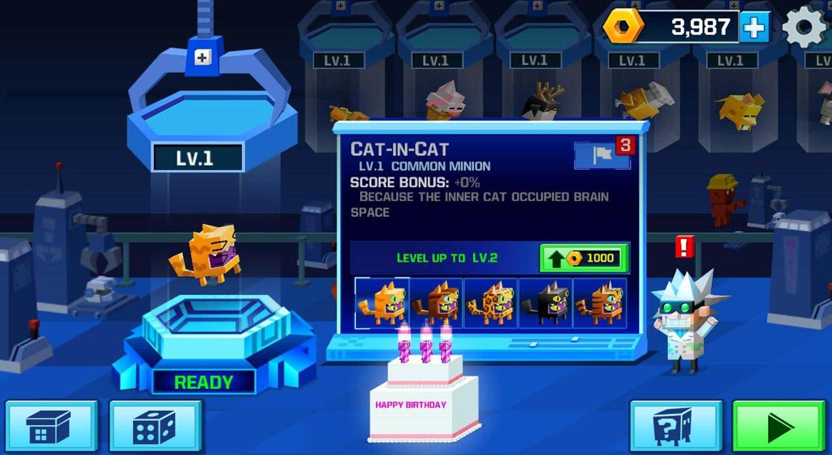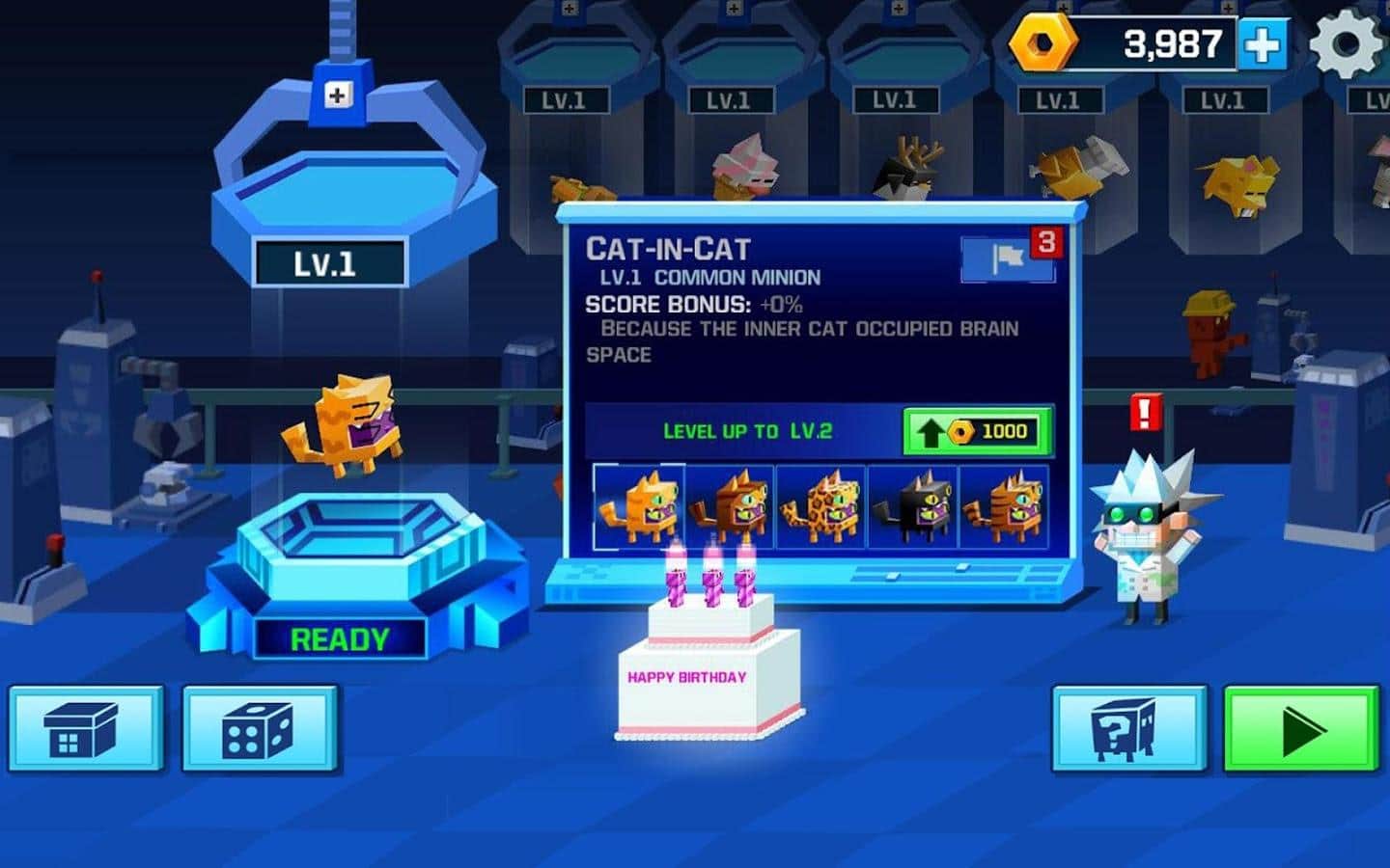 Rooms of Doom - Minion Madness – динамичная аркада на андроид, где вы будете помогать миньонам проходить различные испытания злого ученого. Ученый в своей лаборатории проводил опыты и пытался понять какое животное бегает быстрее, но не пришел к одному итогу, создал невероятных миньонов. После того как миньоны были созданы он решил проверить их на выносливость и выживание в опасных условиях. Помогите миньонам пройти все комнаты, наполненные различными врагами и преодолеть все трудности, достигнув поставленной цели. Игра порадует игроков отличной графикой, разнообразными необычными миньонами, возможностью улучшить своего миньона и посоревноваться с друзьями и другими игроками.