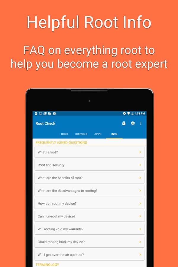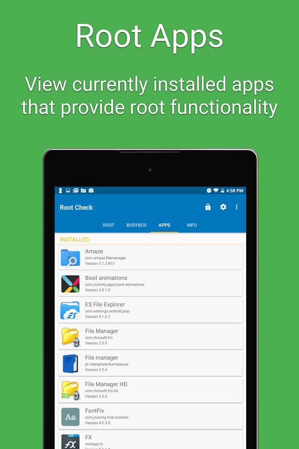 Root Check - Не знаете какие права получены на вашем смартфоне, или же просто хотите проверить какой уровень доступа имеют различные приложения? Тогда это приложение определенно вам поможет, оно выполняет одну простую, но очень важную роль, просканируя все ваши приложения, оно определит которые из них имеют повышенные права доступа, и выдаст вам результат. Это не только обезопасит ваш смартфон, но и даст нужную вам информацию.