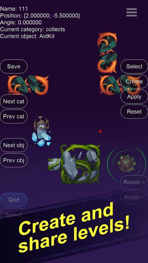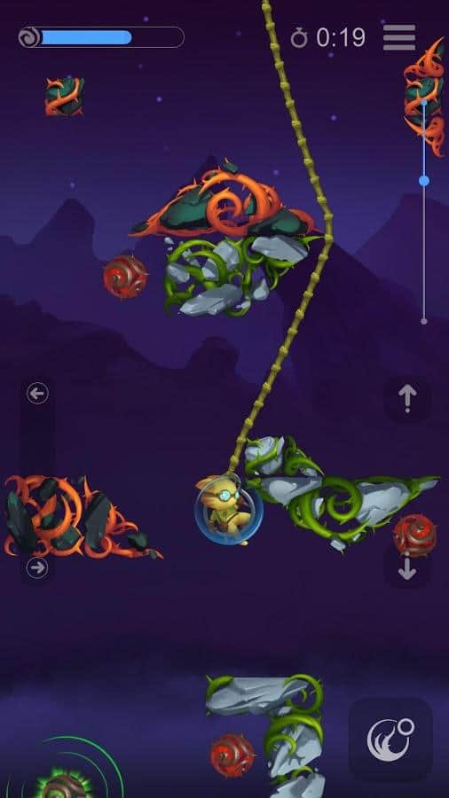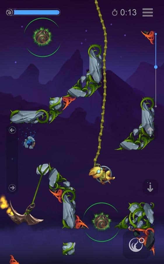 Roots: Shards of the Moon – аркада на андроид, которая порадует вас реалистичной физикой. В этой игре вы будете помогать главному герою, спуститься к намеченной цели обходя многочисленные препятствия и ловушки на пути. Следуйте от уровня к уровню и собирайте многочисленные монетки, которые вы сможете потратить на активацию пассивных и активных способностей, для того чтобы пройти более сложные уровни. Применяйте законы физики и спускайтесь все ниже в опасную пещеру. Эта игра также порадует вас дополнительными возможностями, где вы сможете создавать свои собственные уровни, и делится ими с другими игроками.
