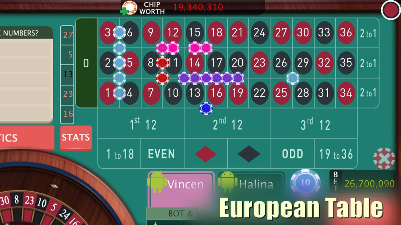 Roulette Royale - для любителей азартных игр, рулетка теперь и на аndroid. Вам не придется идти в казино, для того чтобы поиграть в вашу любимую азартную игру, теперь она у вас в телефоне. Получайте фишки и делайте ставки, поставить вы можете на одно число, а также на несколько одновременно. Чем больше вы поставите, тем больше можете выиграть, выбор зависит от вас. А выиграть можно машины, яхты и виллы! Играть вы можете один, либо выбрать себе партнера с любой точки земли. Пусть вам повезет!