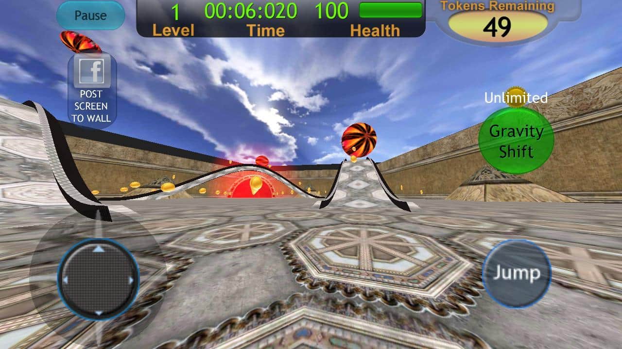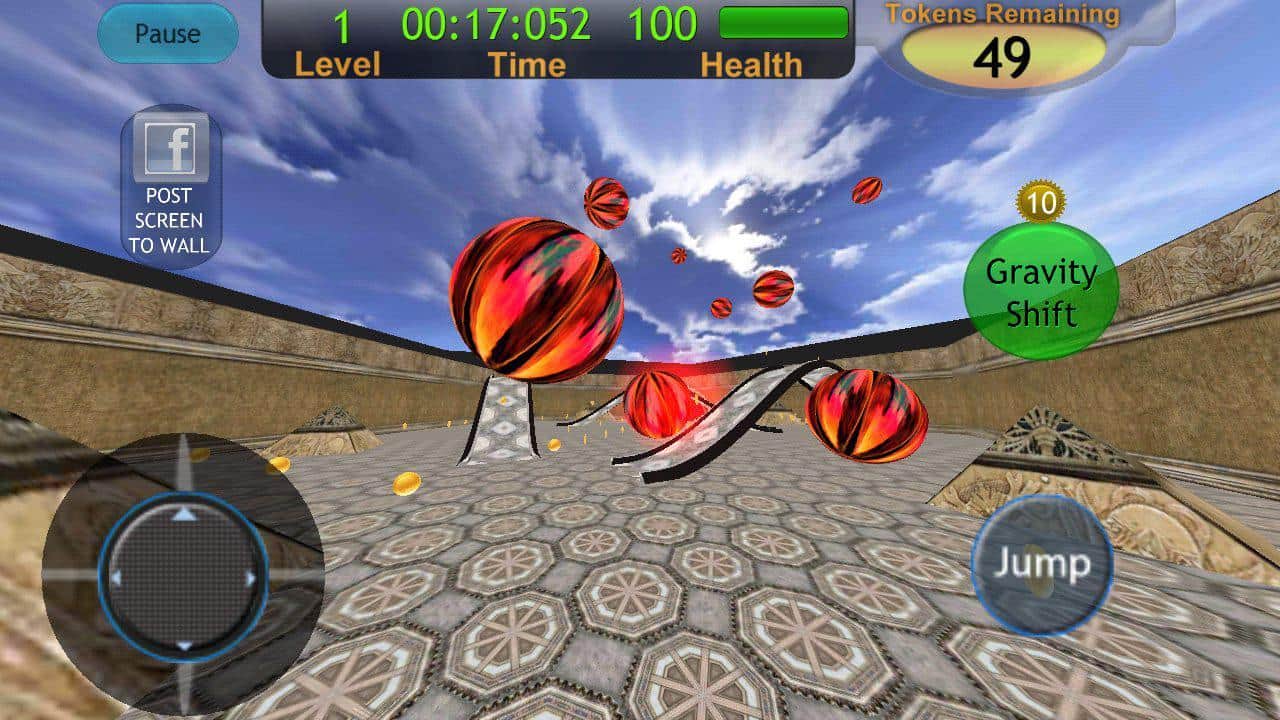 RoverBall3D - необычная космическая аркада о шарах для андроид. Отличная графика и интересное воплощение по сути простой задумки. Для того, чтобы пройти уровень, вам необходимо собрать шариком 50 монеток. Но, конечно же, не все так просто. Вам понадобится ваше терпение, внимание, сноровка и даже везение! Все это пригодится, чтобы выполнить главную задачу, а также преодолеть мешающие красные шары, которые будут пытаться врезаться в вас и сбить с намеченного пути! Кроме того, у вас ограничено время и это задает ритм и драйв! А чтобы игра не казалась вам легкой - на каждый новый уровень дается все меньше и меньше времени! Вот такая веселуха!