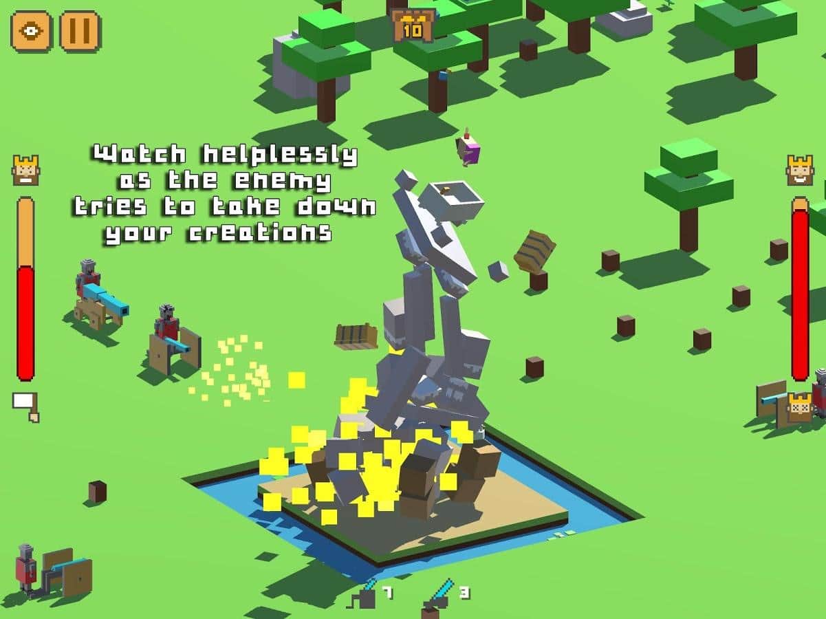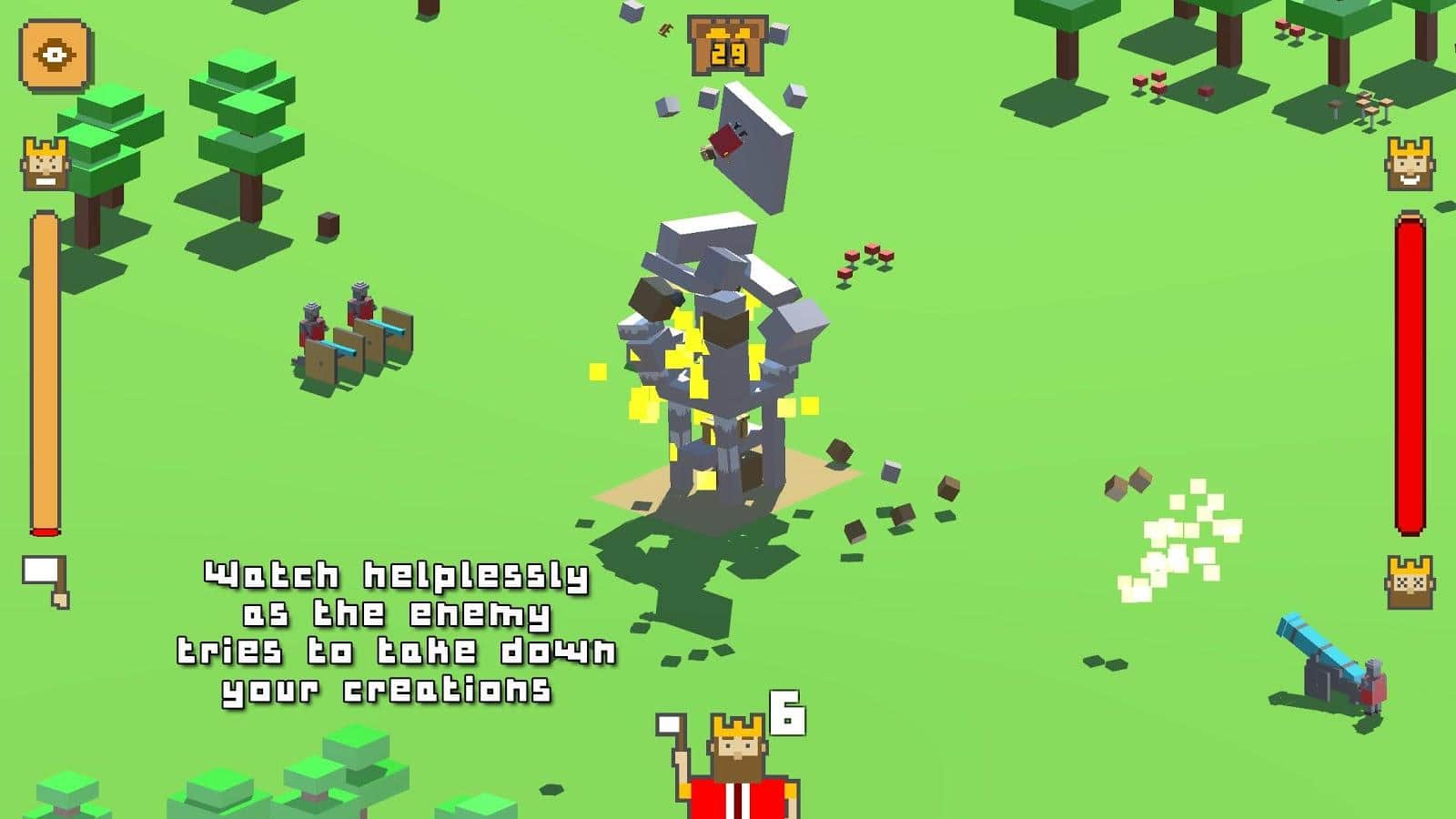 Royal Tumble – игра на андроид, где вы будете строить надежные пьедесталы для короля. В этой игре вы сможете играть за короля, которого хочет свергнуть могущественный лорд, обладающий мощной армией. Возводите надежное укрепление, применяя для строительства крепкие материалы такие как камень, дерево и другие прочные материалы. Возводите нерушимую цитадель для своего правителя и не дайте врагам одолеть вас. Также в этой игре вы сможете играть на стороне лорда и помогать ему, разрушить укрытие, используя разрушительные пушки. Всего в игре представлено два режима игры, редактор уровней и отличная физика.