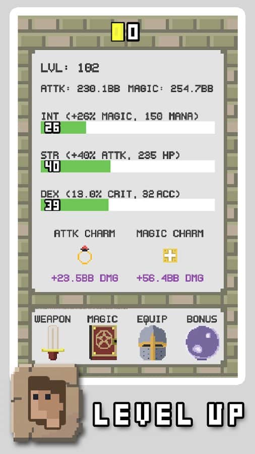 RPG Clicker - Используйте собственное касание пальца по экрану, чтобы напасть на любого из монстров, расположенных перед собой для начала и продолжения боя! Узнайте больше информации о местности, где вы будете развиваться, и начните прямо сейчас узнавать новые заклинания для их дальнейшего использования. В игре разработана специальная система престижа, которая с становится лучше благодаря вашему прогрессу в достижении необходимых результатов в сражениях. Чем больше раз вы нажмете на экран телефона — тем лучше будет ваша атака.