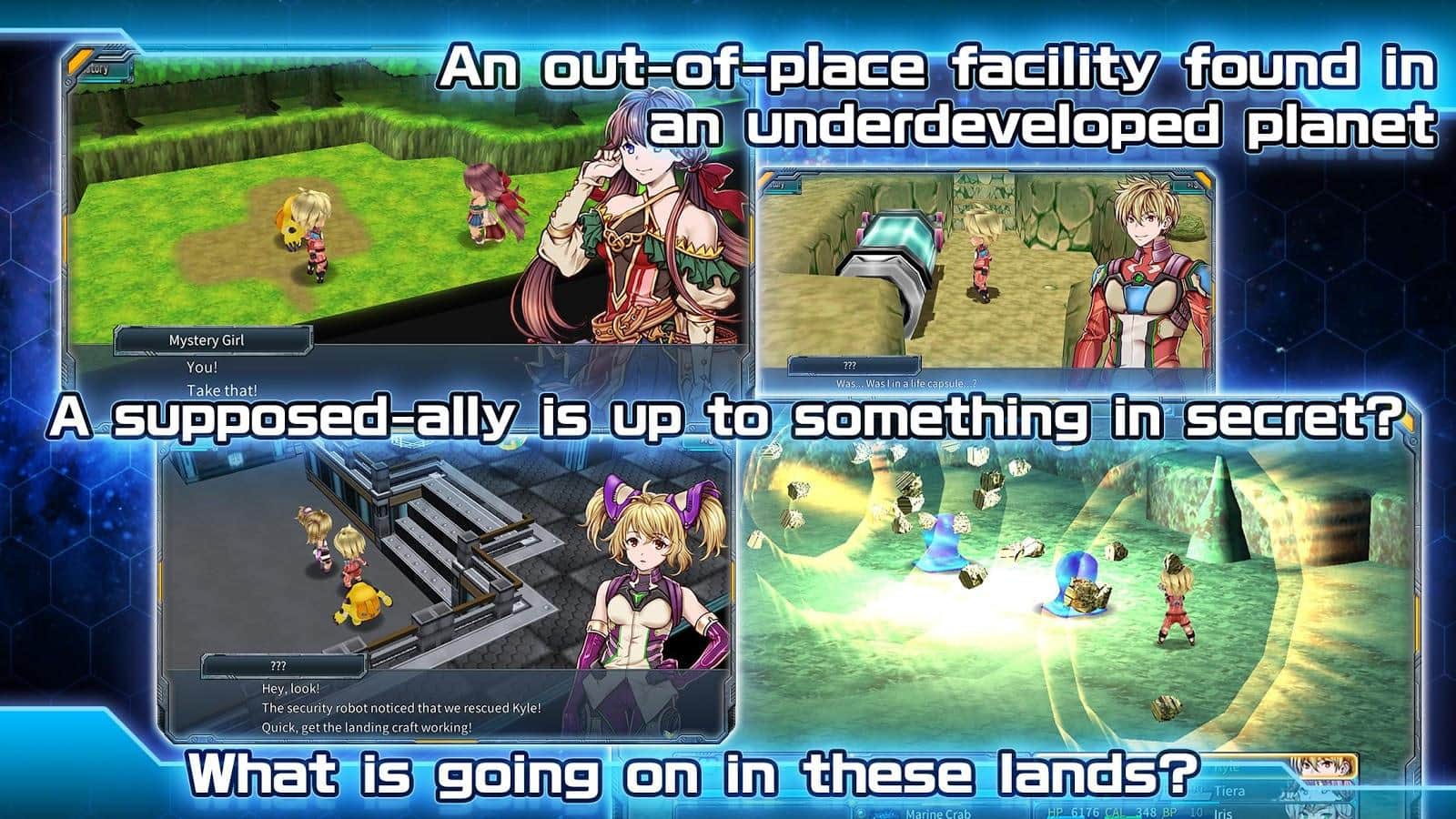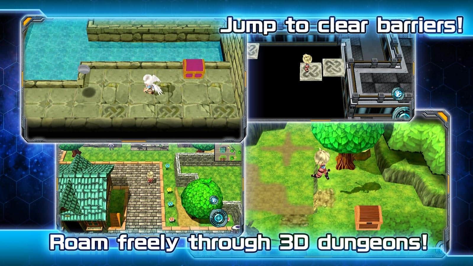 RPG Dimension Cross – ролевая игра на андроид, где вы будете помогать отважному герою Кайлу исследовать далекую планету. Возьмите под свой контроль космический корабль нового поколения Zero и исследуйте новые планеты путешествуя по галактике для расширения сферы человечества. Ваш корабль выбрал для исследования далекую планету прибыв на нее вы должны изучить планету. Кайл и его экипаж увидели на планете объекты не свойственные уровню цивилизации жителей, выяснилось что все жители планеты были захвачены в плен и это была ловушка для вас. Перемещайтесь по планете и прокачивайте своего героя готовя его к битве с многочисленными противниками. Используйте мощные навыки и умения для уничтожения врагов и боссов.