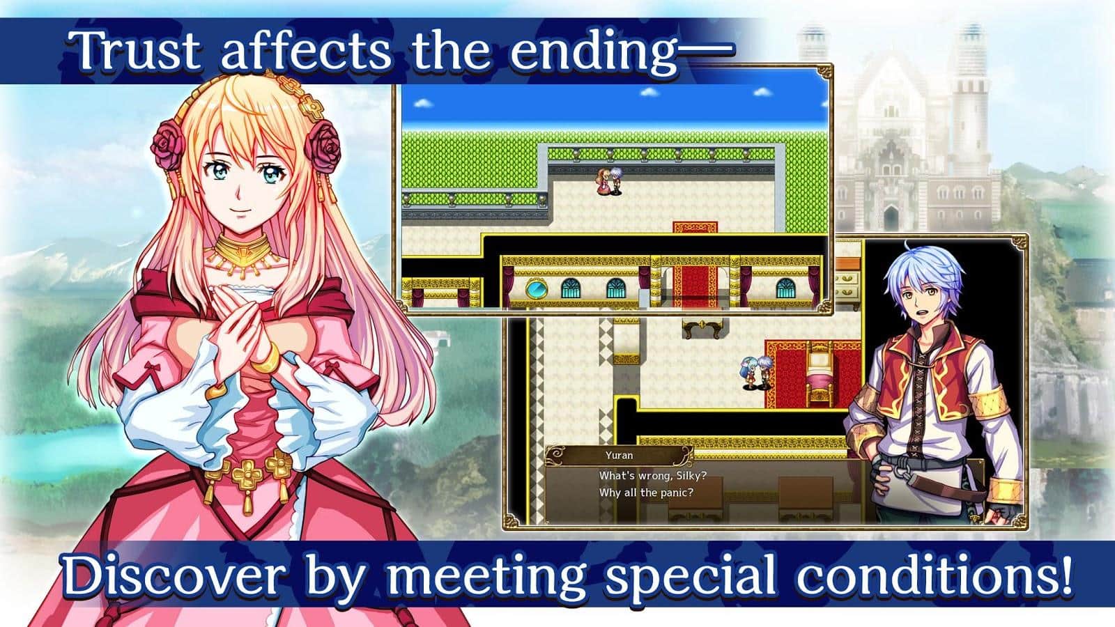 RPG Liege Dragon - Злой Дракон возродился. Принцесса, чей отец погиб и теперь ей предстоит возглавить королевство. Молодой человек, который свалился с горы и полностью потерял память. Ради свершения дракона, они объединяются и отправляются в опасное приключение в поисках Драконьих Инструментов Трех Героев. Проходите пошаговые сражения, бросайте вызов и уничтожайте целые полчища врагов, используйте волшебные камни, чтобы как можно быстрее освоить все навыки! Улучшайте своё оружие и не забывайте что любой ваш выбор влияет на окончание истории. Каким будет ваш финал?