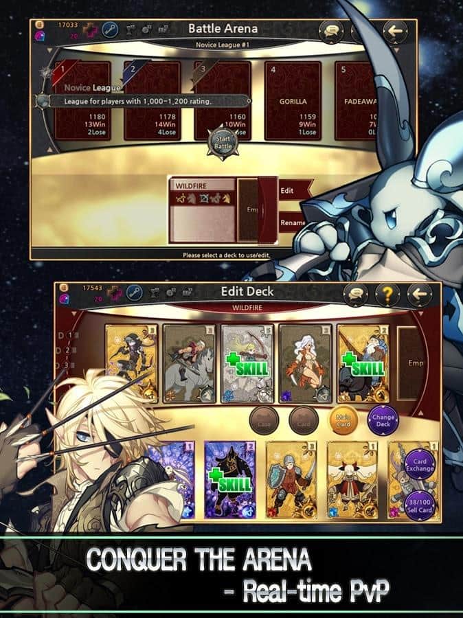RPG Manager – соберите свою коллекцию карт и бросайте вызов сильнейшим игрокам выступая против них на арене. Каждый герой в вашей колоде обладает уникальными способностями и свойствами, применяйте их в боях с соперниками и не давайте им не единого шанса на победу. Пополняйте свою коллекцию новыми картами и изучайте характеристики каждого героя. Подбирайте героев таки образом, чтобы они дополняли других воинов и в тандеме могли победить могущественных боссов. Покоряйте новые горизонты и открывайте для себя потайные подземелья, исследуя их. Сражайтесь на арене с другими игроками со всего мира.