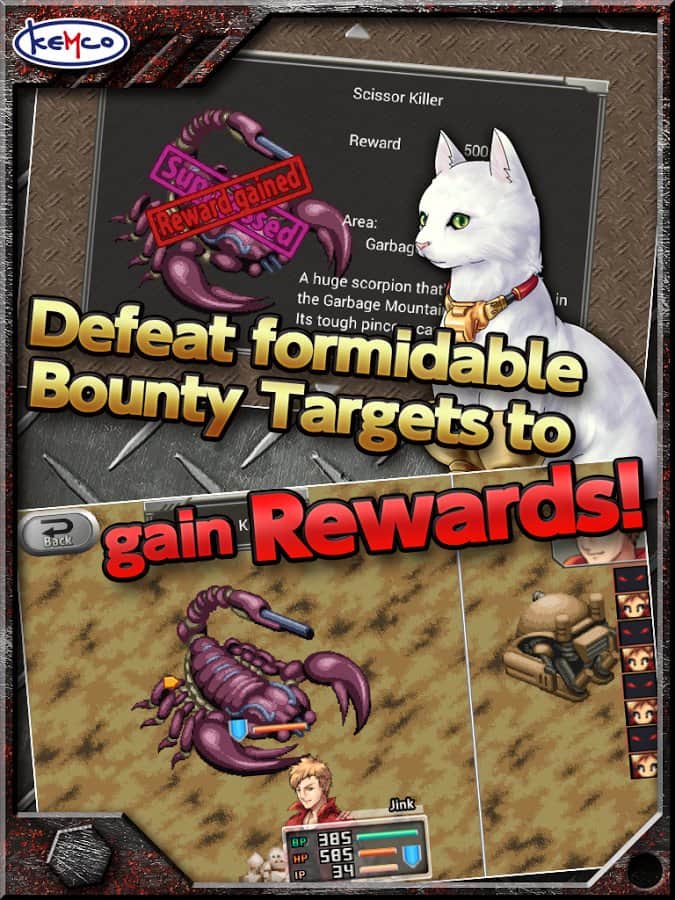 RPG Rusted Emeth - игра, в которой наш герой узнает правду о таинственном враге, который пытается разрушить весь город и тем самым будет втянут в ужасную авантюру. Теперь главному герою предстоит вступить в бесчисленные сражения, чтобы спасти свой мир. Соберите мощную команду союзников, которая будет состоять из разнообразных героев, кукол и кошек. Каждый герой имеет свои индивидуальные особенности, которые проявятся в бою. Вступайте в зрелищные сражения и не дайте победить врагам в битвах.