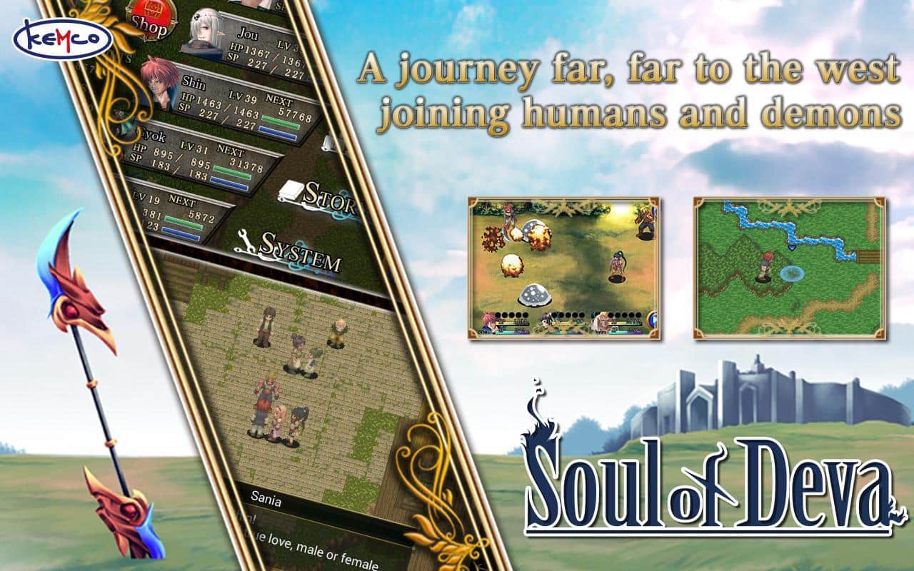 RPG Soul of Deva - RPG на аndroid, в которой вы попадете в мир где демоны нападают на людей, а люди живут в постоянном страхе перед ними. Девушка по имени Сания известна как "спаситель" вызвалась помочь людям в их борьбе против демонов, и когда ее жизнь весела на волоске ей помог молодой демон Шин. Они вместе отправились в опасное путешествие, которое позволит им пробудить таинственные силы, прячущиеся в девушке. Сражайтесь со злыми демонами с помощью своего оружия и увеличивайте его силу и мощь.