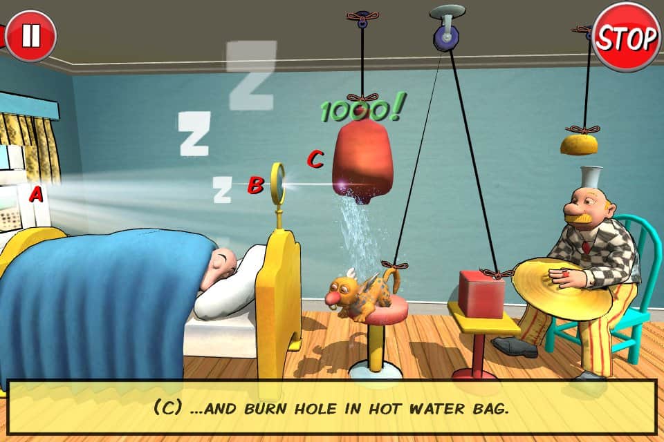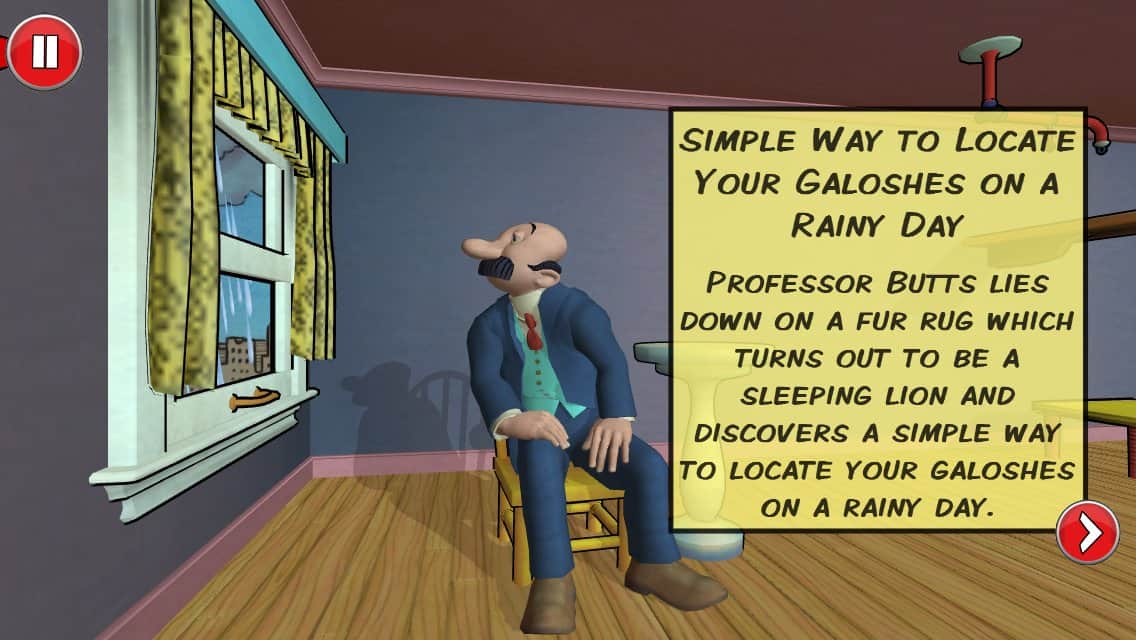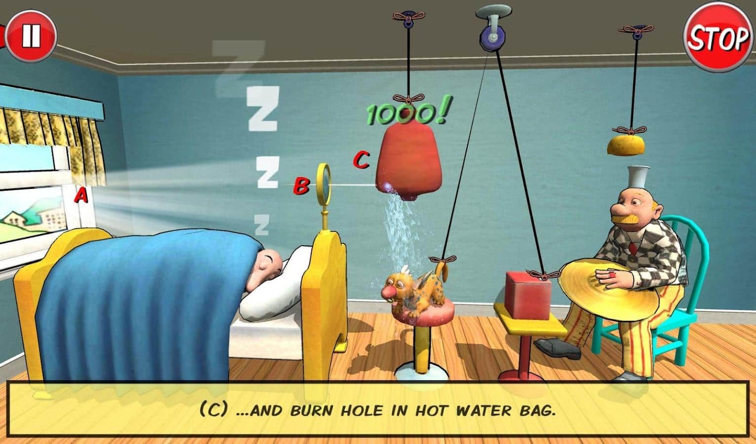 Rube Works: Rube Goldberg Game - Мультяшная головоломка на андроид с яркой насыщенной графикой. Ваша задача собирать и решать головоломки в помещениях, используя цепочки различных предметов. Так же хочется отметь, так как игра не русифицирована, для комфортной игры вам нужно хотя бы базовое знание английского языка.