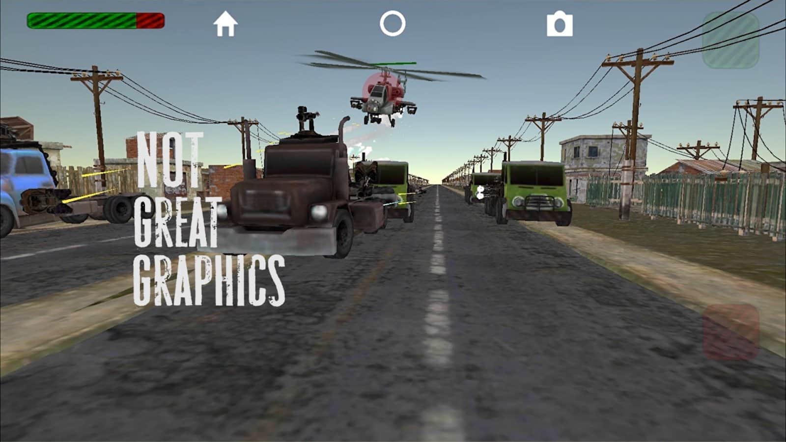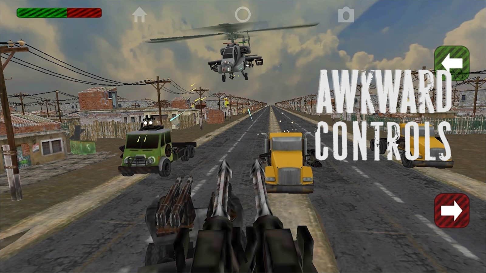 Trucks'n'Guns: Endless Road War – смесь жанров Endless Runner и Run and Gun. В игре вы возьмете на себя роль водителя бронированного, вооруженного до зубов грузовика. Прокачивайте вашу машину, устанавливайте на нее как можно больше оружия и проедьте как можно дальше, уничтожая всех, кто встанет на вашем пути!Широкий выбор пулеметов, ракетниц и грузовиков помогут вам стать лучшим на дороге, система рейтинга позволит поделиться вашими достижениями с друзьями, а минималистичная графика позволит запустить игру практически на любом смартфоне.Смесь жанров Runner и бешеных гонок.