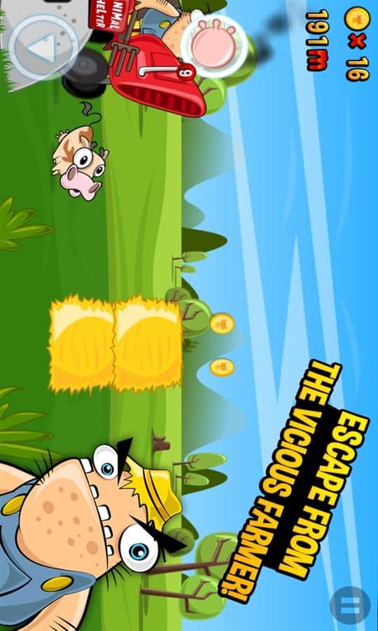Run Cow Run - игра на windows phone, в которой маленькая корова понимает какое будущее ждет ее дальше - она попадет на бойню. И корова начинает бежать , по пути спасая остальных животных от злого фермера который хочет сделать из нее стейк. Прыгайте через препятствия, собирайте монеты, чтобы получить уникальные бонусы которые помогут корове обрести свободу.