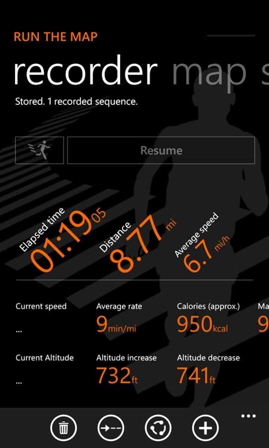 - Расстояние, истекшее время, скорость, высота над уровнем моря, сожженные калории