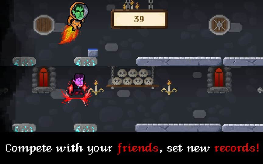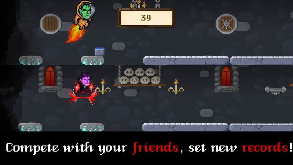 Runaway to meet - довольно необычный хардкорный платформер, однако данный проект нельзя сравнить с обычными минималистическими аркадами данного направления, единственное что их объединяет это сложность, но вот игровая механика совершенно иная. На первый взгляд все может показаться довольно простым, бежишь, прыгаешь, собираешь призы. Но стоит поиграть и становиться ясно что не все так просто, управлять вам предстоит сразу двумя героями одновременно, причем делать это придется синхронно, так что процесс потребует не только внимания, но и точности движений. Ко всему прочему игра богата всевозможным цифровым контентом, горы предметов, огромный выбор персонажей и костюмов для них, более 50 различных достижений, сотня уровней, проработанная пиксельная графика, поддержка русского языка.