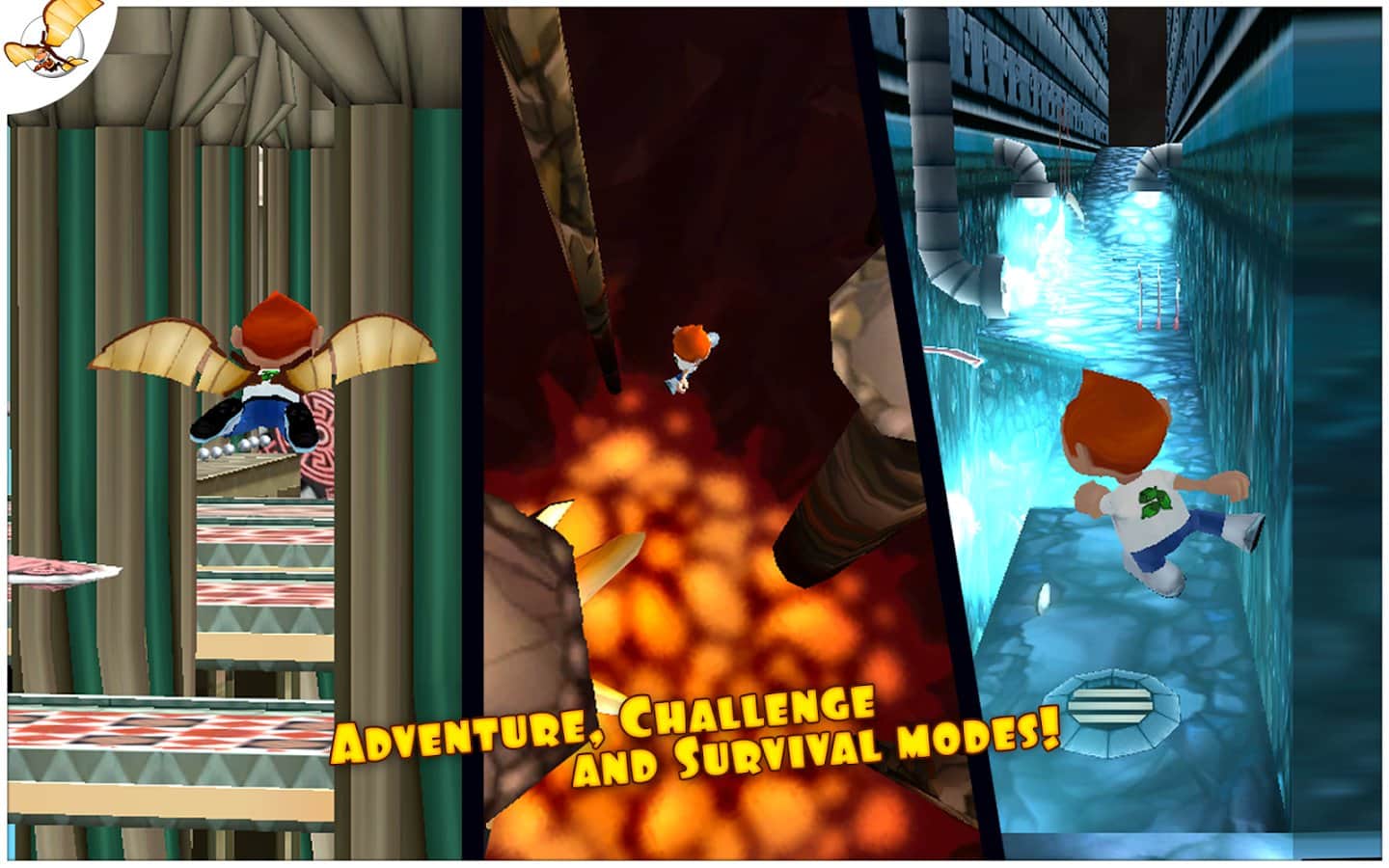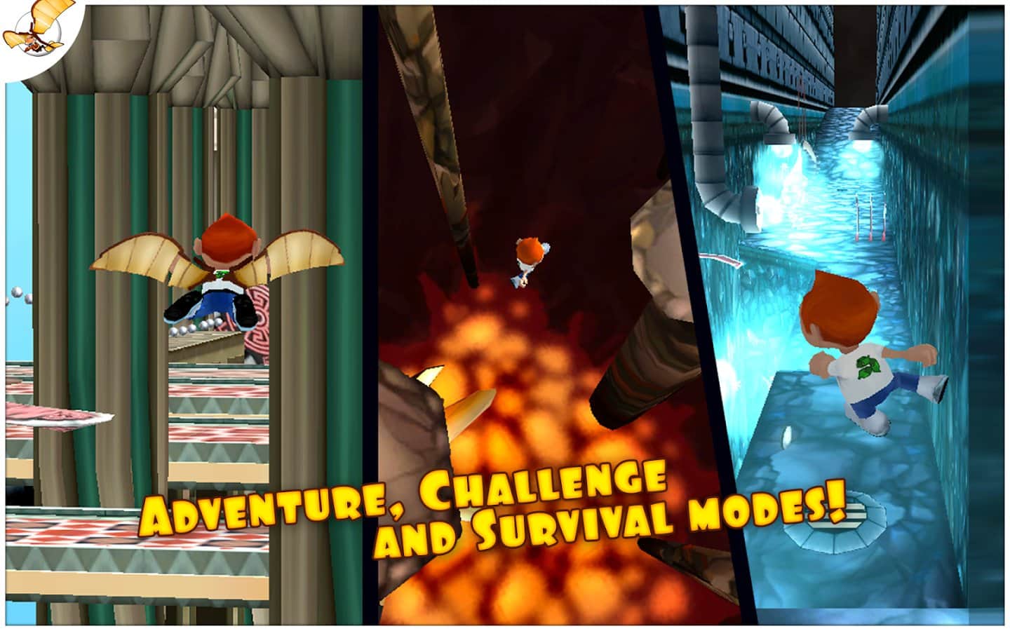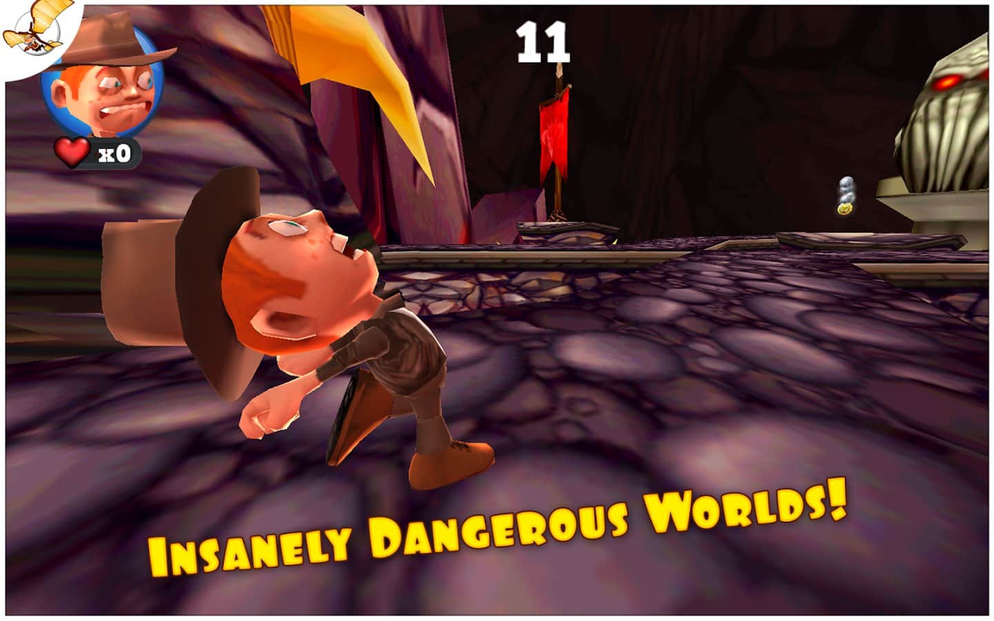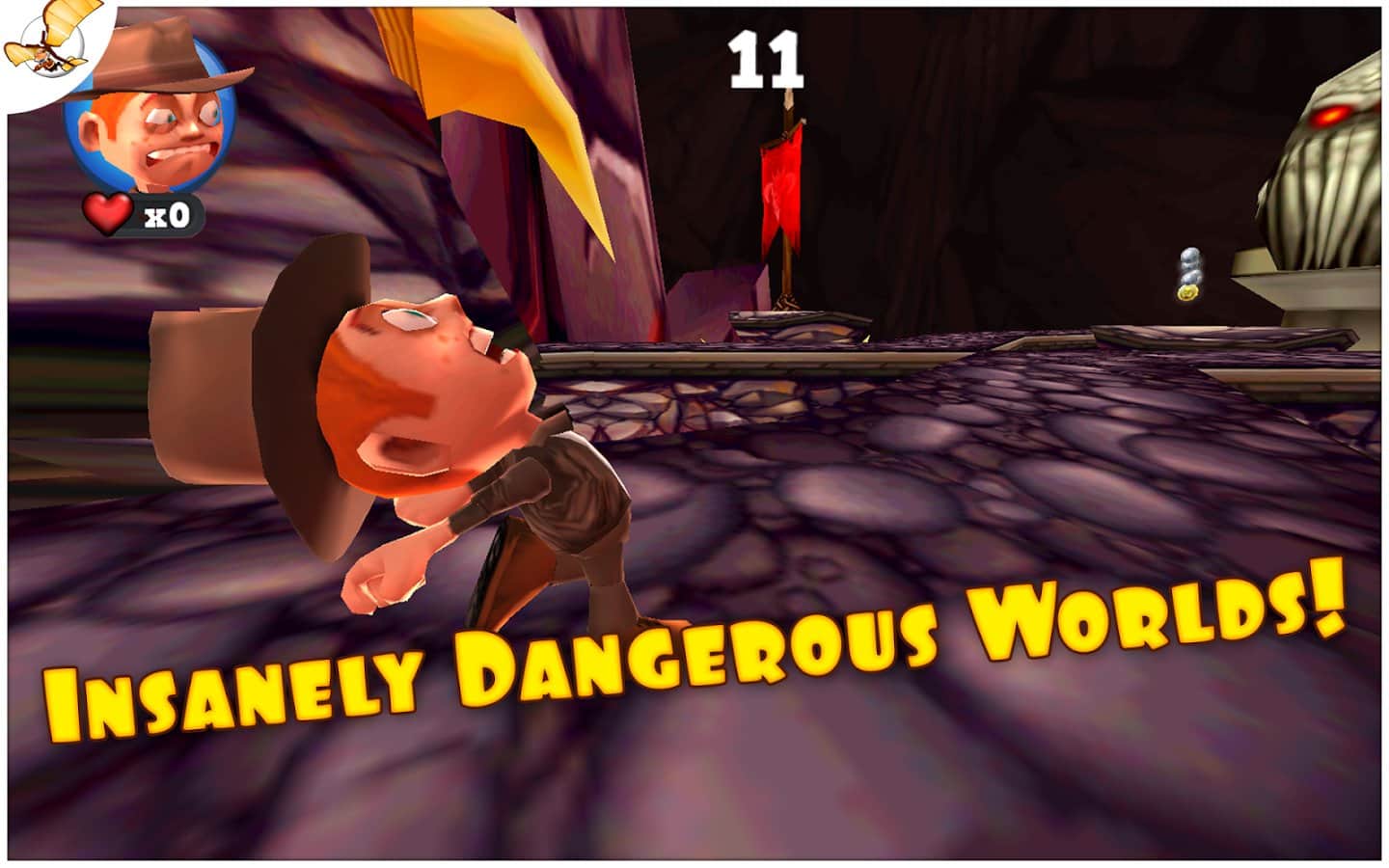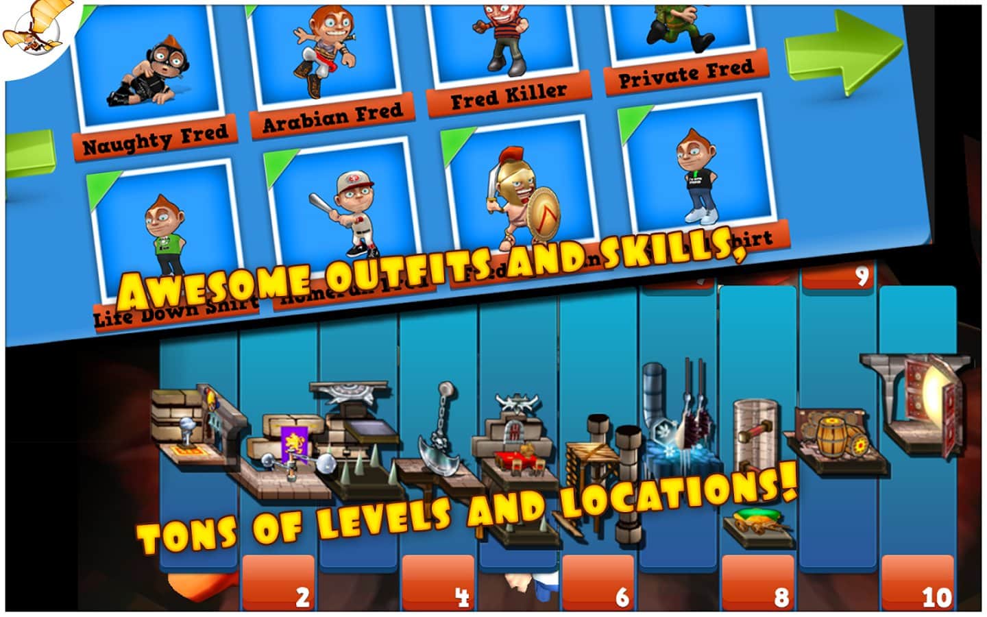 Running Fred - и вот наконец, продолжение замечательной игры Falling Fred. Теперь наш неугомонный искатель приключений бежит... Да еще как! Running Fred для android - это настоящие гонки на выживание с самой Мисс Смертью! И это вам не простое падение с высоты, здесь все намного серьезнее! Итак, вам предстоит бежать не останавливаясь (благо благодаря акселерометру, Фред бежит сам, ваша задача лишь управлять другими его действиями - прыжками, уворачиванием, поворотами и пр.) и при этом надо собирать серебряные монетки, разбросанные по всему уровню. И как можно больше, ведь по окончании уровня они обмениваются на золотые в соотношение 5 к 1. т.е. за 5 серебряных дается 1 золотая. А уж на золотые монетки можно купить различные способности (например, прежде всего стоит купить двойной прыжок), а также приодеться... Но для этого нужно постараться! Ну что ж - впереди много акробатических фигур высшего пилотажа в вашем исполнении, сотни опаснейших ловушек, огромное количество разных навыков и бонусов. Есть несколько режимов игры: Приключение, Вызов и любимое Бесконечное Выживание!
