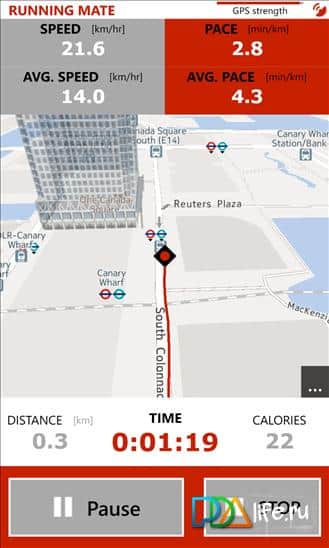 Running Mate - приложение для windows phone, с помощью которого вы можете отследить статистику и время пробежек либо велосипедных поездок. Также вы можете проложить маршрут на карте, но при этом не пользуясь интернетом карты HERE Maps находятся в вашем телефоне. Приложение сохраняет всю конфиденциальность ваших данных, оставляя их в телефоне.