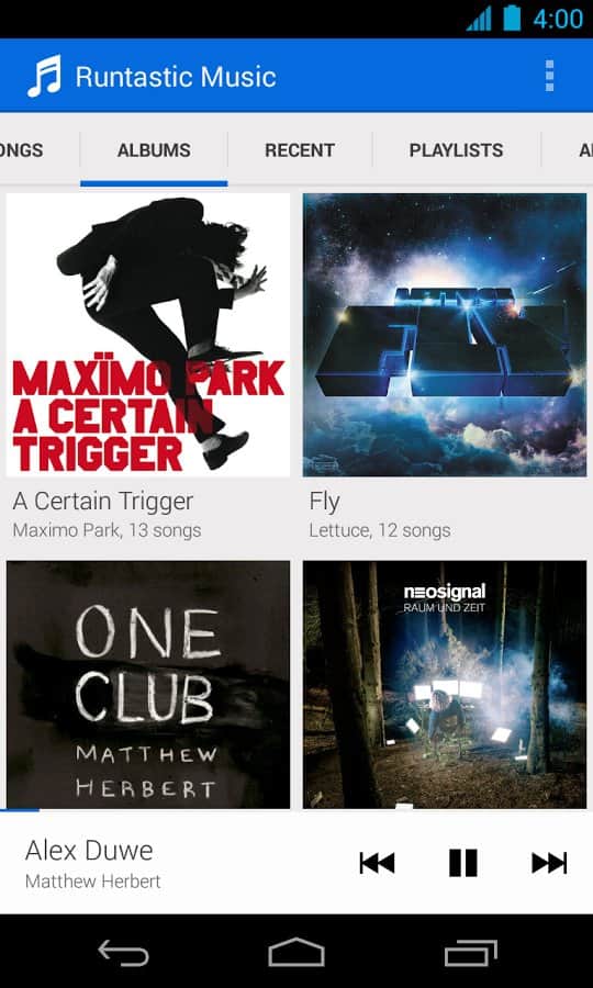 Runtastic Music – плеер для андроид, который станет отличным дополнением для таких приложений как: Runtastic, Runtastic Road Bike, Runtastic Mountain Bike и Runtastic Six Pack. А так же Runtastic Music обещает новый взгляд на прослушивание собственной музыкальной библиотеки и имеет интуитивно понятный пользовательский интерфейс.