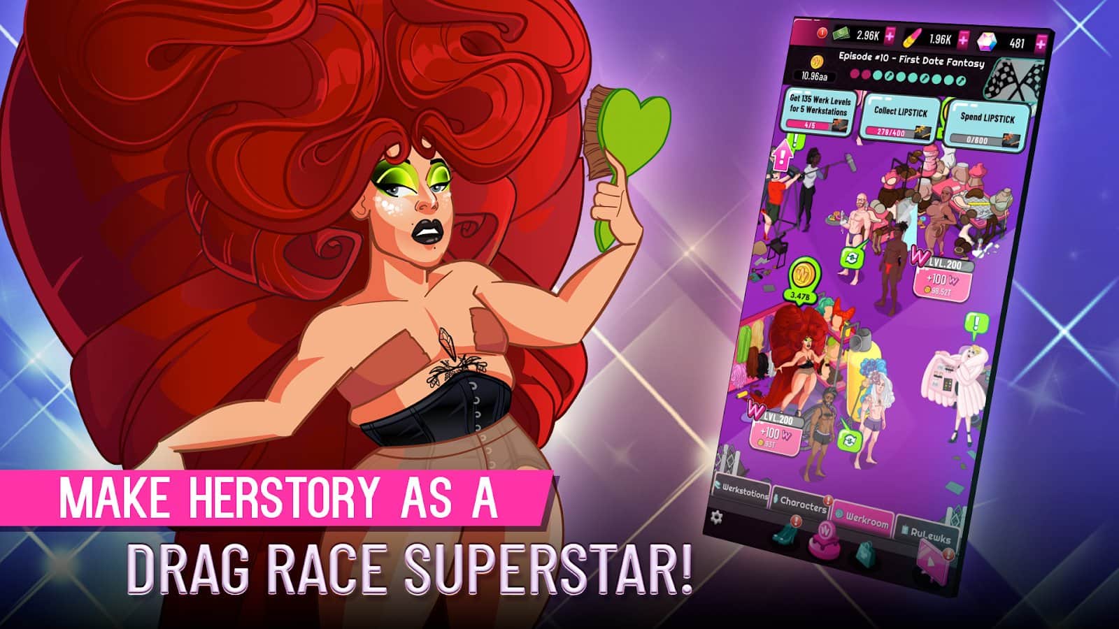 RuPaul's Drag Race Superstar - Полностью окунитесь в мир моды суперзвезд Драг Рейс, чтобы сразиться с другими игроками за возможность стать лучшей из лучших. Станьте истинной королевой, тщательно выбирая собственные наряды для выходов на известные вечеринки и прочие места. Между перерывами вы всегда можете расслабиться в зоне отдыха, пообщаться с конкурентками и успеть оценить чужие наряды, решая кто пройдет дальше. Подготовка к таким важным событиям требует тщательной подготовки, успейте сделать все дела до начала конкурсов!