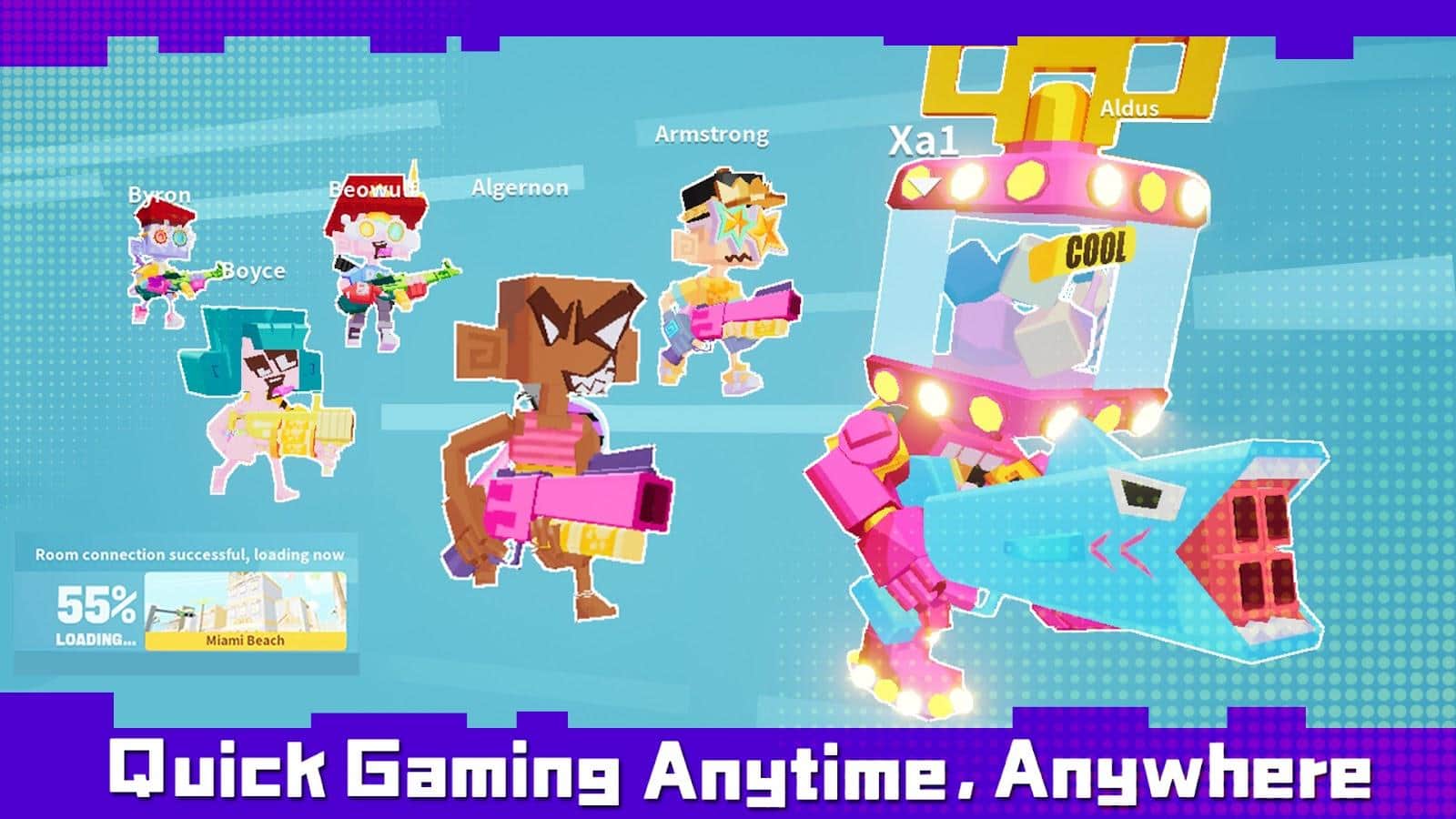 Rush Minutes - захватывающая игра-шутер от третьего лица с простым управлением в стиле кубических пикселей и ощущением свободы. Здесь вы найдете не только бесплатные игры для детей, но и увлекательные развлечения для всех возрастов! Вам предстоит отправиться в бесконечное приключение, полное веселых игр и готовых нарушать правила! 🔫 Насладитесь быстрой игрой в любое время и в любом месте: присоединяйтесь к сражениям мгновенно и погрузитесь в 3-5-минутные бои с многопользовательским режимом, чтобы почувствовать адреналин и веселье игры! 🎭 Уникальные персонажи: выразите свою индивидуальность с помощью сотен уникальных костюмов для персонажей, доступных абсолютно бесплатно. Сделайте своего героя неповторимым и выделитесь на поле боя своим стилем!