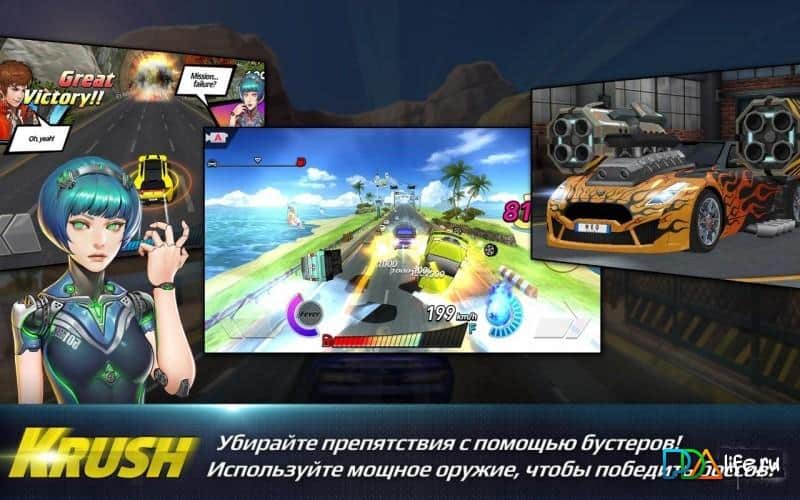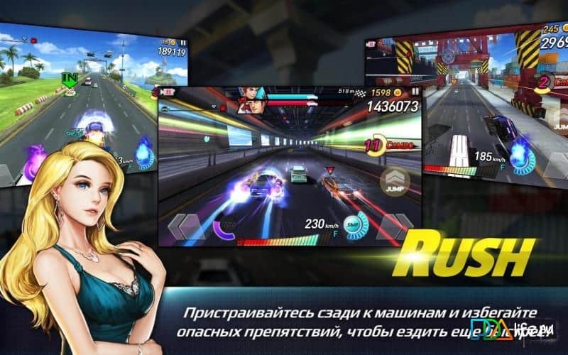 Rush N Krush – динамичные гонки на андроид, с безумными скоростями и отличными бонусами. Выбирайте себе машину и гонщика, подбирая идеальное сочетание, чтобы достичь невероятных высот и побороться с самыми сильными игроками со всего мира. В этой игре вы будете гонять по оживленным трассам, обходя своих соперников или пристраиваясь к ним, таким образом, обходя все препятствия на своем пути. Собирайте бонусы и усиления, чтобы применить комбо и проложить себе путь через многочисленные машины и преграды, разрушая все на своем пути. Бросайте вызов случайным игрокам в режиме реального времени и гоняйте с ними 1 на 1, устраивая дуэли, а также устраивайте заезды в режиме гонок с друзьями до 4 игроков одновременно и получайте ценные призы за победу.