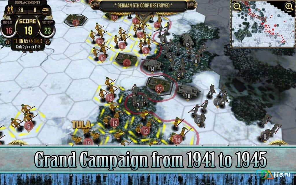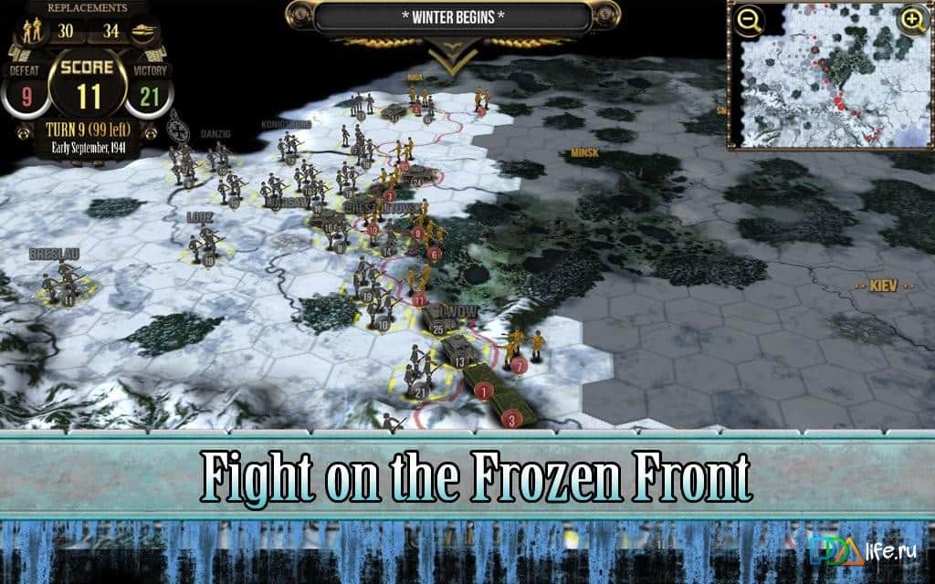 Russian Front - Амбициозная андроид стратегия, которая повествует нам о великой отечественной войне. По названию игры понятно, что вы будите играть на стороне Русских, которые пытаются отбиться от фашистских захватчиков. За основу уровней взяты реальные бои, которые происходили на протяжении 1941-1945 годах. Сама игра представляет собой пошаговую стратегию на клеточном поле.