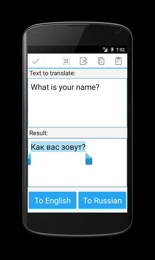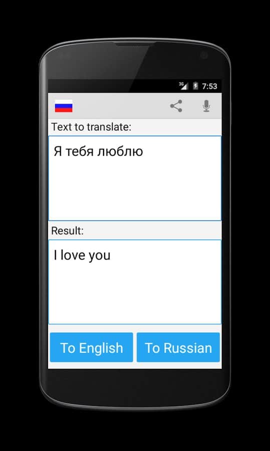 Отличный переводчик,перевести с русского на английский,хе можно кстати с этим приложением поехать в Англию,и там если не знаеш переводить в этом приложении на английский если не знаеш его конечно,очень даже неплохо.