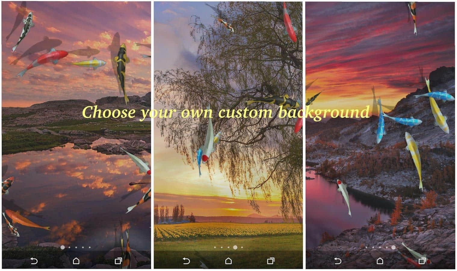 S4 Water Pool PRO – красивейшие живые обои для андроид от разработчика Linpus Technologies, Inc. Чистейший пруд, 9 различных видов рыб, 5 тем, 3 фона, а так же возможность выбора фона самостоятельно. Большое количество настроек, что позволит вам сделать данные обои незабываемыми для себя. Обои выглядят очень реалистично и абсолютно нее напрягающими.