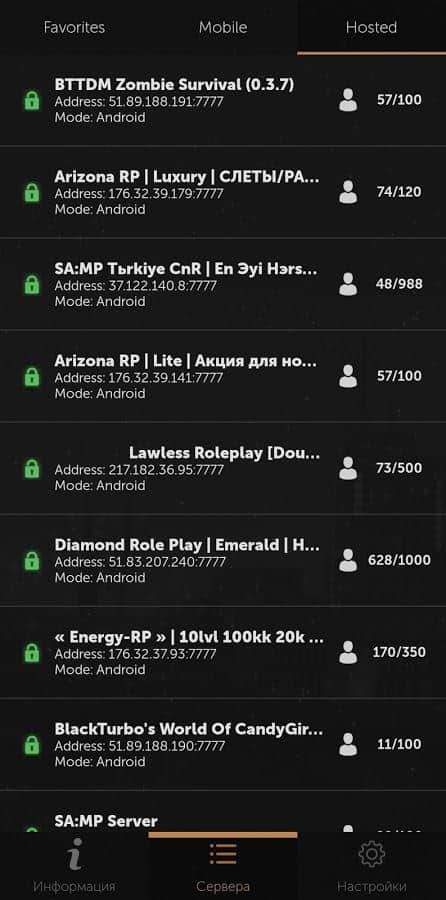 Ну что тут сказать? Всё скажу кратко и ясно. Отличный мульти самп на андроид. Всё что требуется от игрока, ввести ip сервер на котором он хочет играть и всё. Также есть подборка серверов. Но сделаю одно замечание: данный самп клиент НЕ работает на смартфонах honor/huawei (хз из-за чего это, ну вроде из-за гугла). Ну а так 10/10. Спасибо Крапучино что залил этот клиент сюда