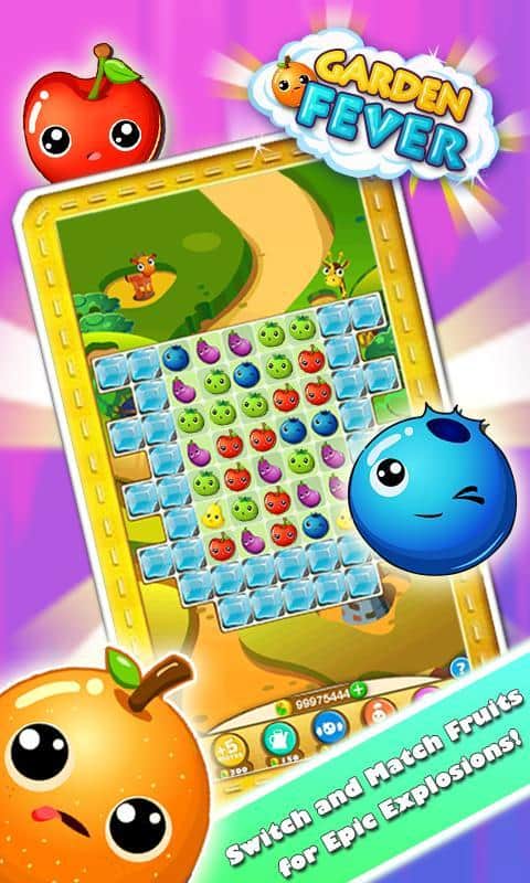 Сад Легенда - Garden Fever - Вас ждут очень вкусные плоды в саду! Решите сотни уровней в этой великолепной игре - головоломке. Вас ждут потрясающая музыка, звуковые эффекты, красивый фон игры, красочная графика. Ощутите сочный всплеск фруктов и создай комбо путем составления бомбы, которые имеют уникальный эффект. Не пропустите эти великолепные пазлы, где так весело и легко играть!