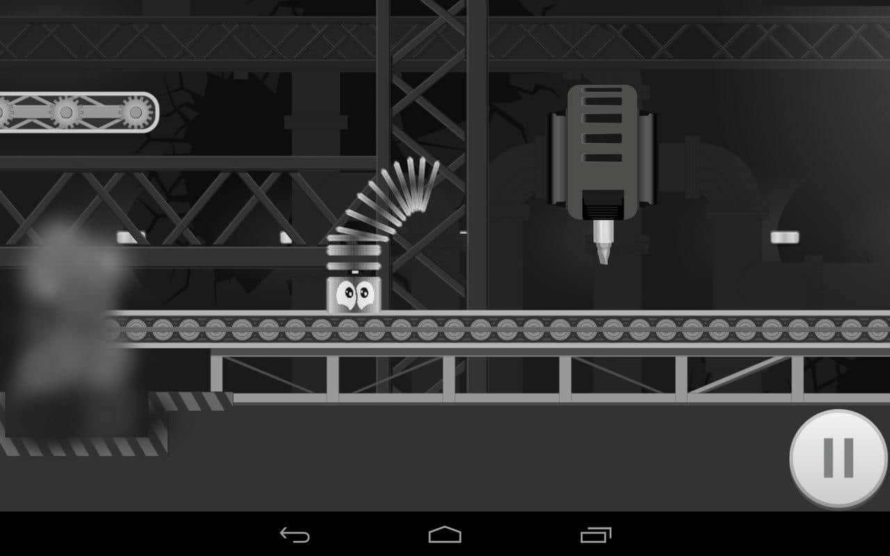 Ничего сложного. Я сразу разобрался. Пружина идёт сама, лишь когда надо перешагнуть какуюнибудь пропасть (для подсказки в этот момент темнеет экран) нужно наклонять телефон в соответствующую сторону. Предметы, кирпичи двигаются пальцем. Враги убиваются аналогично. На последних уровнях где конвеер сложновато, пока засел на 10 уровне...