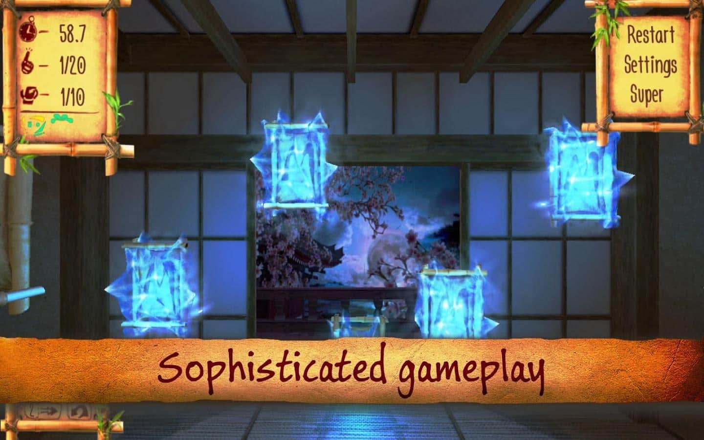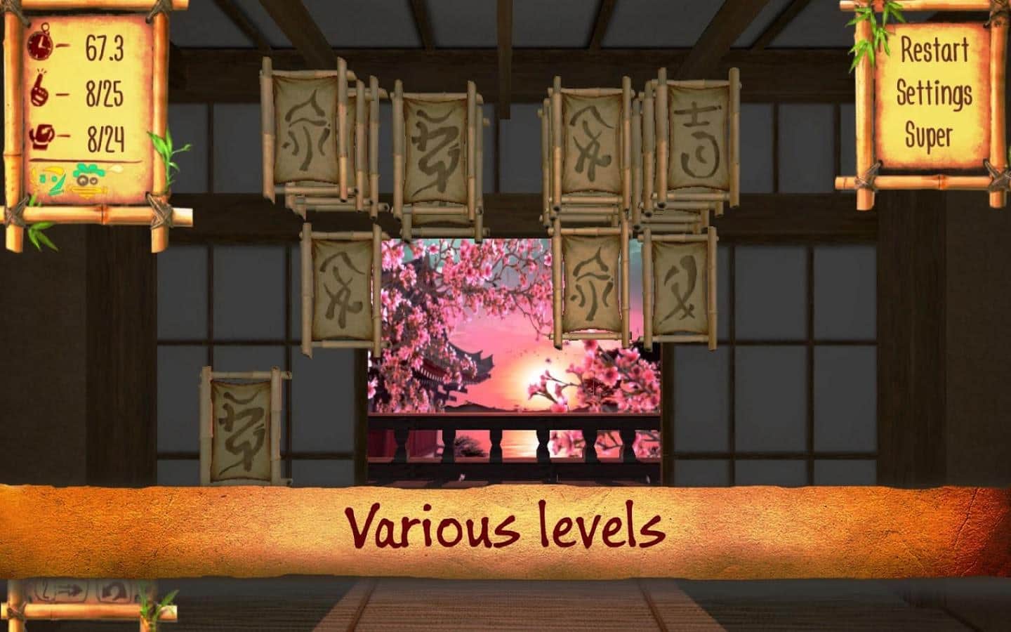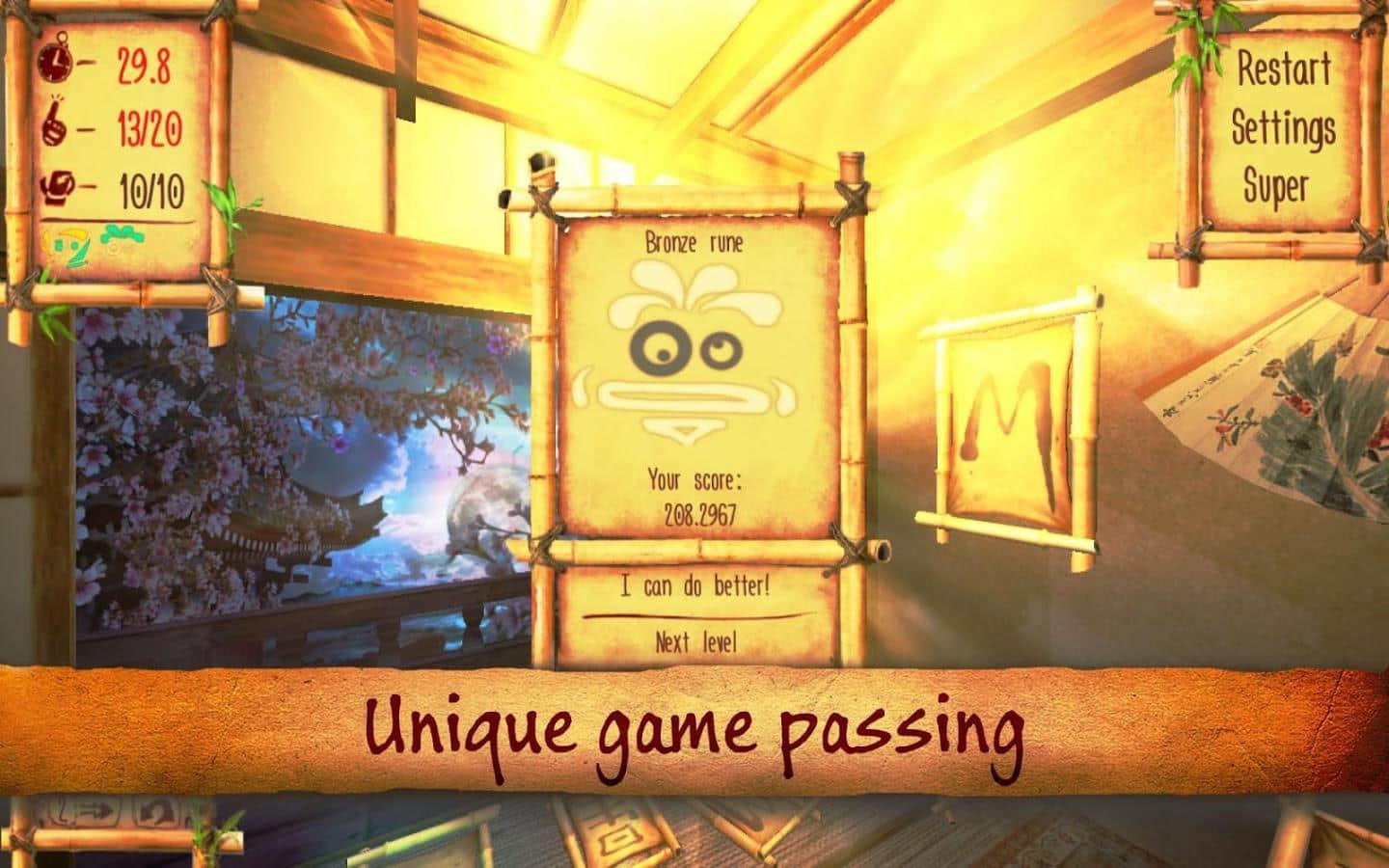 Samurai Puzzletto – 3D головоломка на андроид, в которой вы будете помогать самураю Пузлетто, находить нужные руны. Эта игра переместит вас в древнюю Японию, где правят самураи и одному из них выпала большая честь расшифровать древние руны. Помогите ему это сделать и не упасть в гряз лицом. Вращайте древние руны, находите одинаковые и убирайте их с поля. Эта игра поможет вам тренировать свою память и внимательность. Перемещайтесь по двум различным 3D локациям и наслаждайтесь яркими спецэффектами, которыми порадует вас эта игра. Улучшайте свою память и добейтесь лучших результатов, становясь лидером в этой игре.