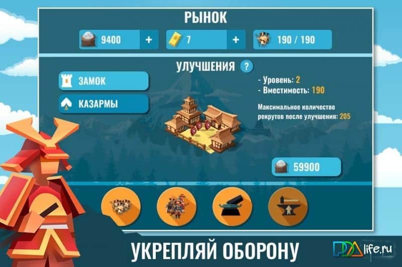 Samurai: War Game - Увлекательная игра, про Японию и её самураев. Это стратегия, но не обычная. Ваша основная задача, уничтожить базу противника, используя свои войска. На карте будет множество точек, городов, и каждая из них, изначально, будет пренадлежать нейтральным войскам, вы с помощью своих воинов, будете захватывать их, и производить там свои войска, и так пока не уничтожите главный замок врага. Стоит заметить, что в игре присутствует несколько типов войск, одни из них лучше в защите, другие в атаке, а третье хороши и тут и там, да и в добавок, имеют большую скорость передвижения. Так же, присутствует система усилений, что делает каждого игрока уникальным, вам решать куда делать уклон, и что улучшать по ходу игры. А теперь генералы, в атаку.