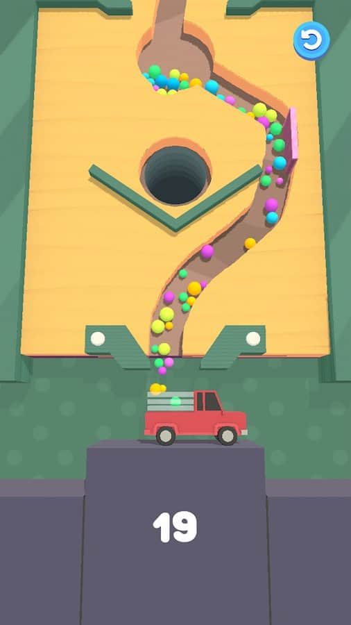 Sand Balls – занимательная игра на андроид, где вы будете прокладывать путь для шаров. С помощью одного прикосновения пальца к экрану проложите путь для шаров так чтобы не растерять их по пути. На вашем пути возникнет множество различных преград и препятствий, которые вы должны обойти и достигнуть финиша. С каждым новым уровнем вы будет получать больше разноцветных шаров, которые должны достичь грузовика. Решайте непростые головоломки и задачи и проходите уровни получая по три звезды за каждый из них.