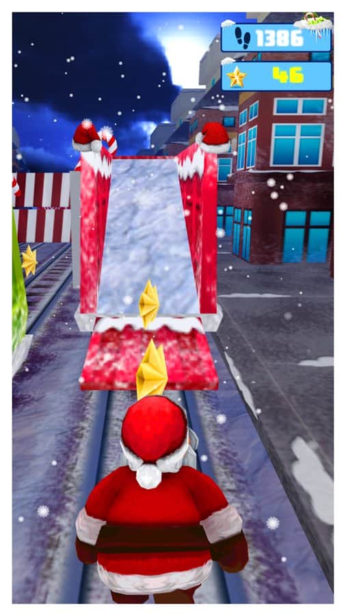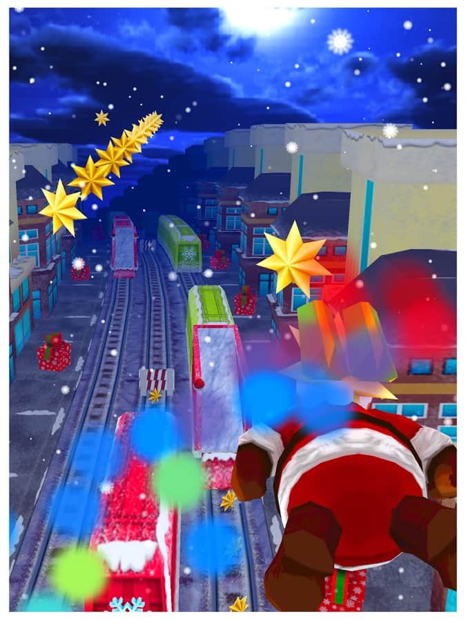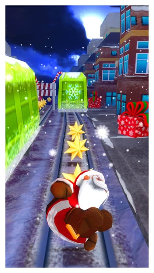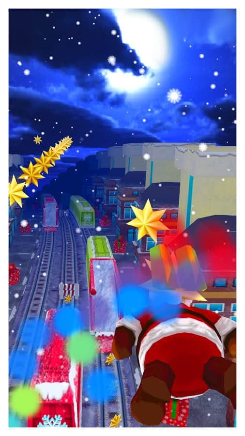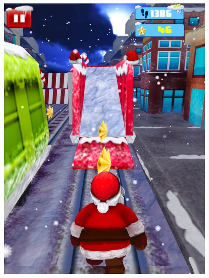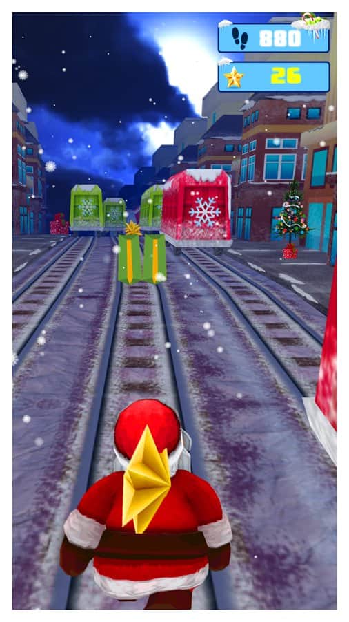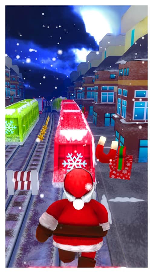 Santa Runner :Xmas Subway Surf – раннер на андроид, который подарит вам новогоднее настроение. В этой игре вашей главной задачей будет провести Санта Клауса по многочисленным уровням и собрать все подарки. Бегайте, прыгайте и обходите все многочисленные вагоны, которые окажутся у вас на пути, чтобы как можно быстрее набрать свой мешок подарками. Также не забывайте собирать золотые звезды и бонусы в виде реактивного ранца и магнита. Устанавливайте свой рекорд в этой игре и открывайте новые трассы. Наслаждайтесь новогодней атмосферой игры и ждите приближение праздников.
