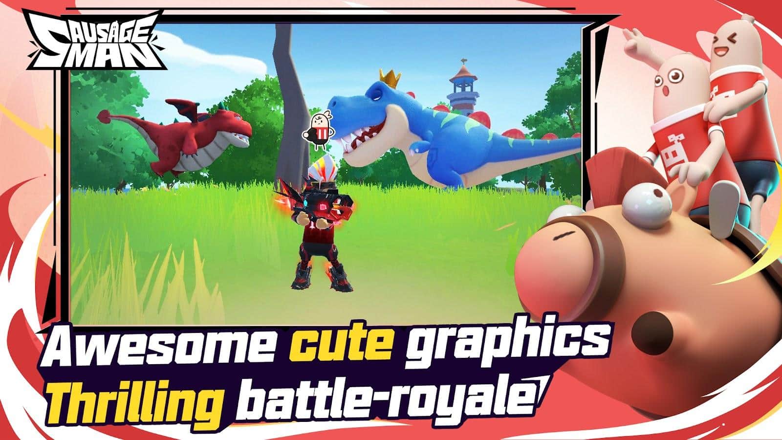 Когда то давно играл ещё с ТапТапа, но перестал из - за лагов. А так, типичный батл рояль с механикой планирования из фортнайта и мультяшностью картинки. Кстати, необычно видеть сосисок вместо людей...