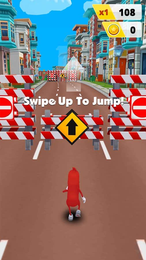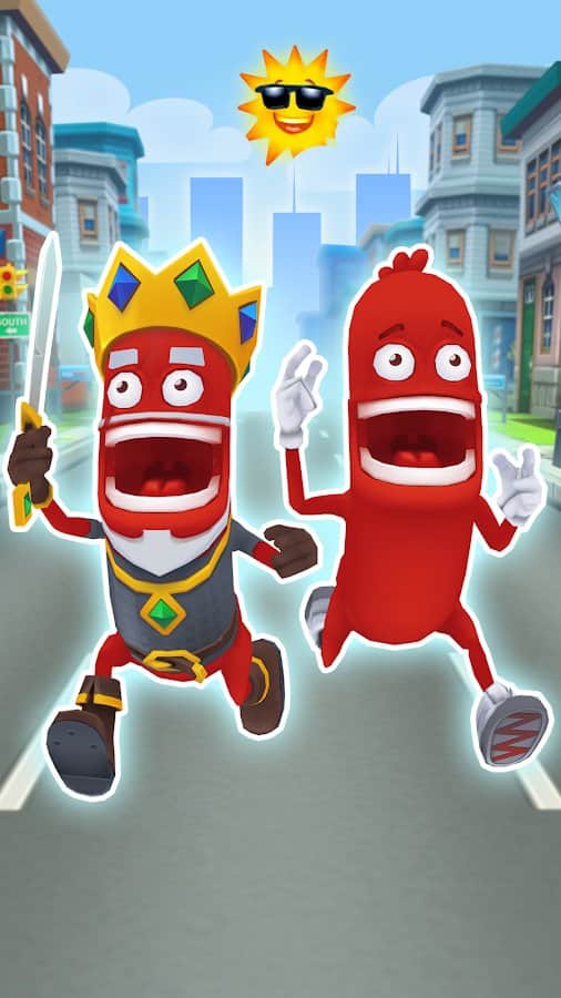 Sausage Run 2 – веселый раннер на андроид, где вы будете управлять бегущей сосиской. В этой игре вы возьмете под свой контроль бегущую сосиску, которая с максимальной скорости бежит по оживленному городу и обходит все преграды и препятствия у себя на пути. Покажите на деле свою отличную реакцию и смещайте сосиску из стороны в сторону для того чтобы избежать столкновения с барьерами, автомобилями и другими преградами. Применяйте различные усиления, такие как ракеты и самолеты и соберите все бонусы по пути.