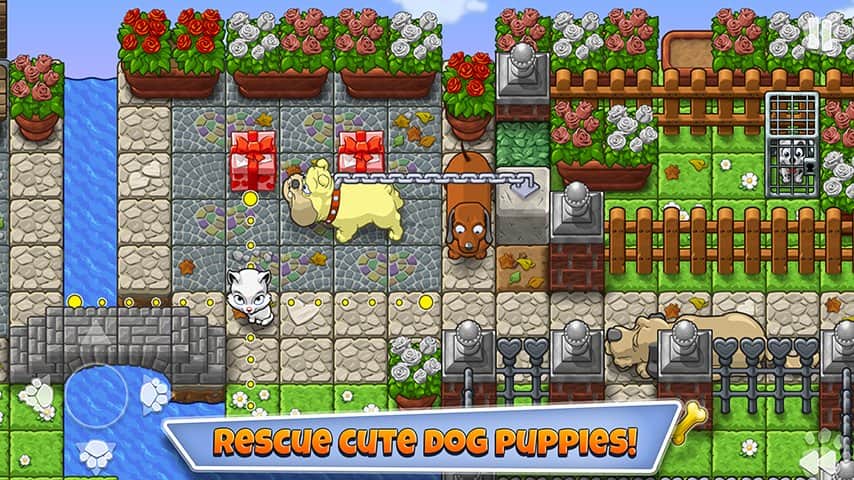 Save the Puppies – скачиваем бесплатно милую такую игру головоломку для андроид. Однажды, темной, темной ночью, на темной, темной улице – в общем, один злой собаколов похищает малышей щенков. Ваша задача найти щенят и освободить их из клетки. Вы играете за мамашу таксу, которая в процессе игры поедает косточки и сосиски, порой ,видимо от переедания=), она растягивается до не передать каких размеров, как в игре «змейка». Веселенькая графика, не напрягающий геймпей!