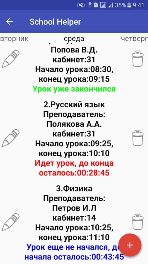 School Helper - универсальный помощник школьника - это приложение поможет вам вести не только обычный дневник, но так же и его настоящий электронный аналог. Вы сможете записывать сюда все что нужно, начиная от расписания и заканчивая конспектами! Однако и это не все, сюда можно записать не только конспект но и загрузить фотографии к нему, и даже аудио. Это многофункциональный, универсальный инструмент, освоив который учиться станет не только веселее но и легче.