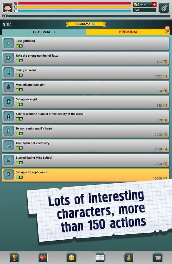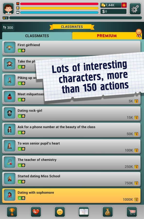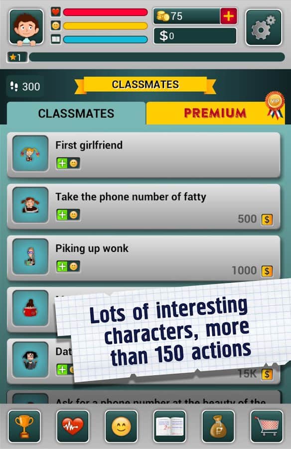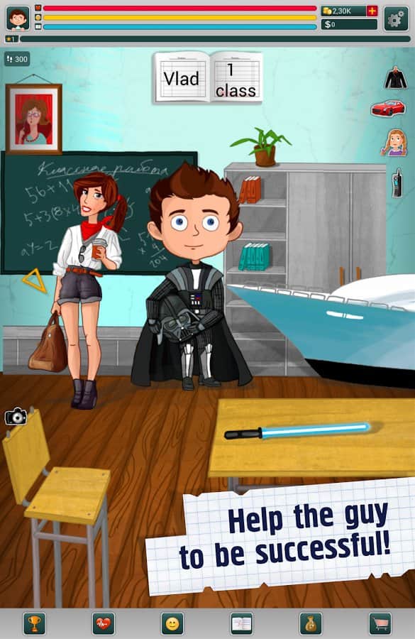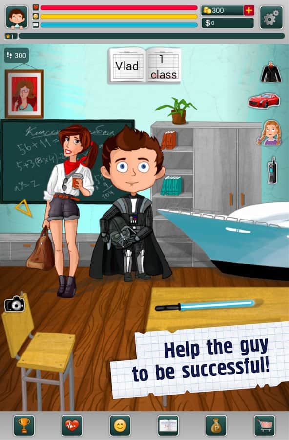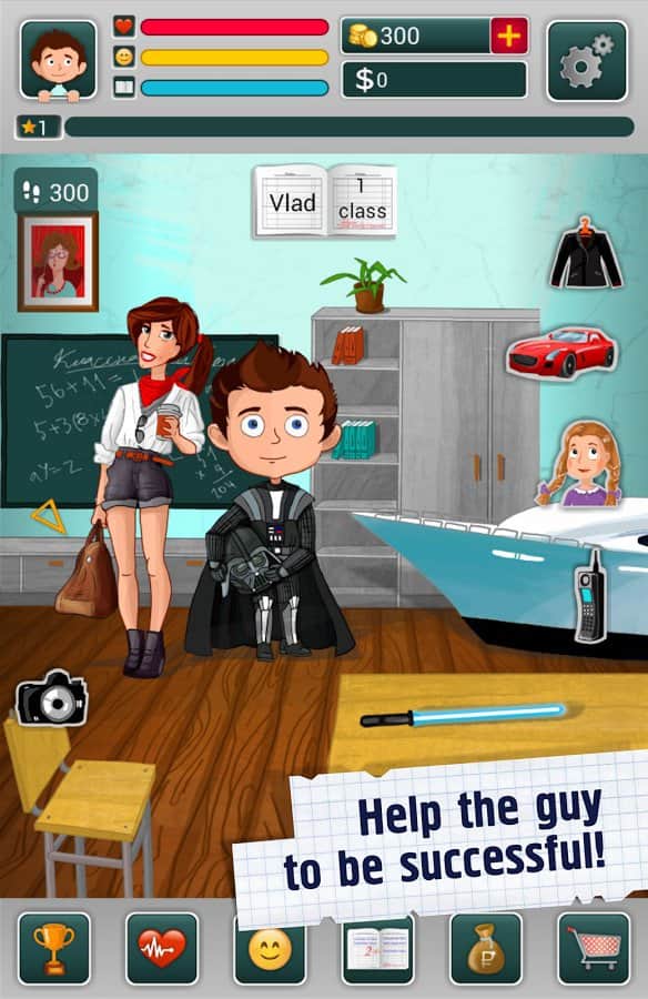 Школьник - симулятор жизни - Интересный и забавный симулятор мальчика, который начинает свой путь с первого класса школы. С момента как вы запустите игру его жизнь будет в ваших руках. От вас будет зависит как он будет учится, играть, что он вообще будет делать. Кем он станет? самым известным и богатым предпринимателям или самым обычным гаишником? Будет ли он гулять с самыми красивыми девушками, например, мисс мира или же просто с обычной девочкой со двора?