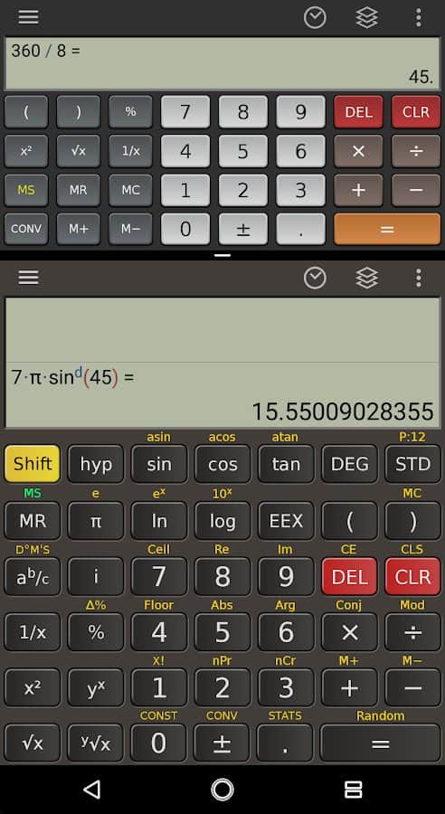 Калькуляторы - приложения которые довольно широко представлены на мобильных платформах, однако большая их часть позволяет воспользоваться лишь минимальным набором функций. Но есть и куда более серьезные представители например Scientific Calculator Plus, это полнофункциональный калькулятор который позволяет проводить вычисления с дробями, комплексными числами, физическими константами. Кроме этого в приложение интегрировано ряд полезных функций, например конвертер единиц, несколько слотов памяти, полноценная инструкция, онлайн возможности, настройка стиля калькулятора, а так же целый ряд функций характерных для цифровых калькуляторов с ПК.