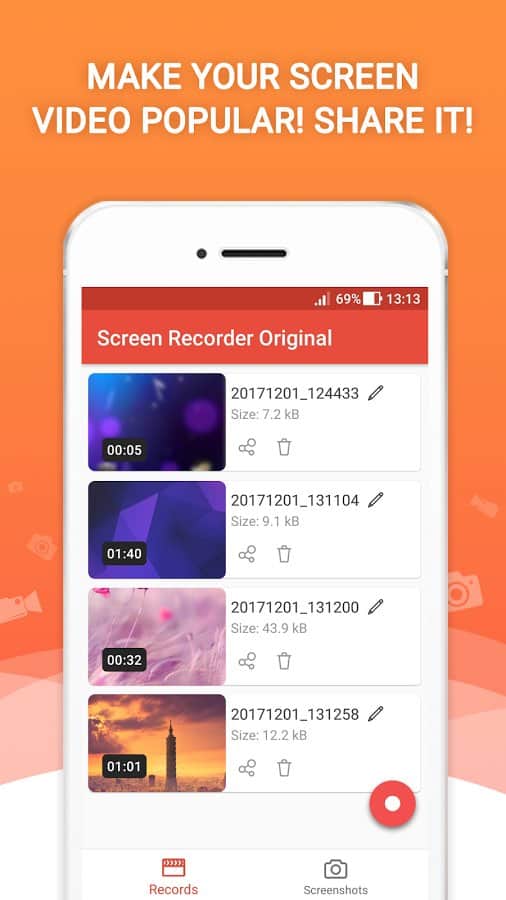 Screen Recorder Original - если вы хотите поделиться с друзьями и близкими своими достижениями на работе, каким-то значимым для вас событием, или вы в очередной раз прошли самый сложный уровень в видеоигре, или банально сделать презентацию, то это приложение поможет вам в этом без лишних прав доступа и абсолютно бесплатно. При этом качество изображения будет изумительным.Особенности: